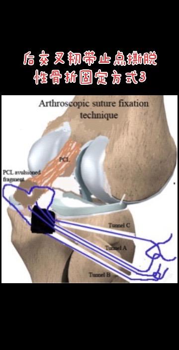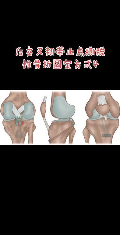 后交叉韧带止点撕脱性骨折固定方式。随着关节镜技术的发展,越来越多的手术通过关节镜下进行,以减少手术创伤和恢复时间。