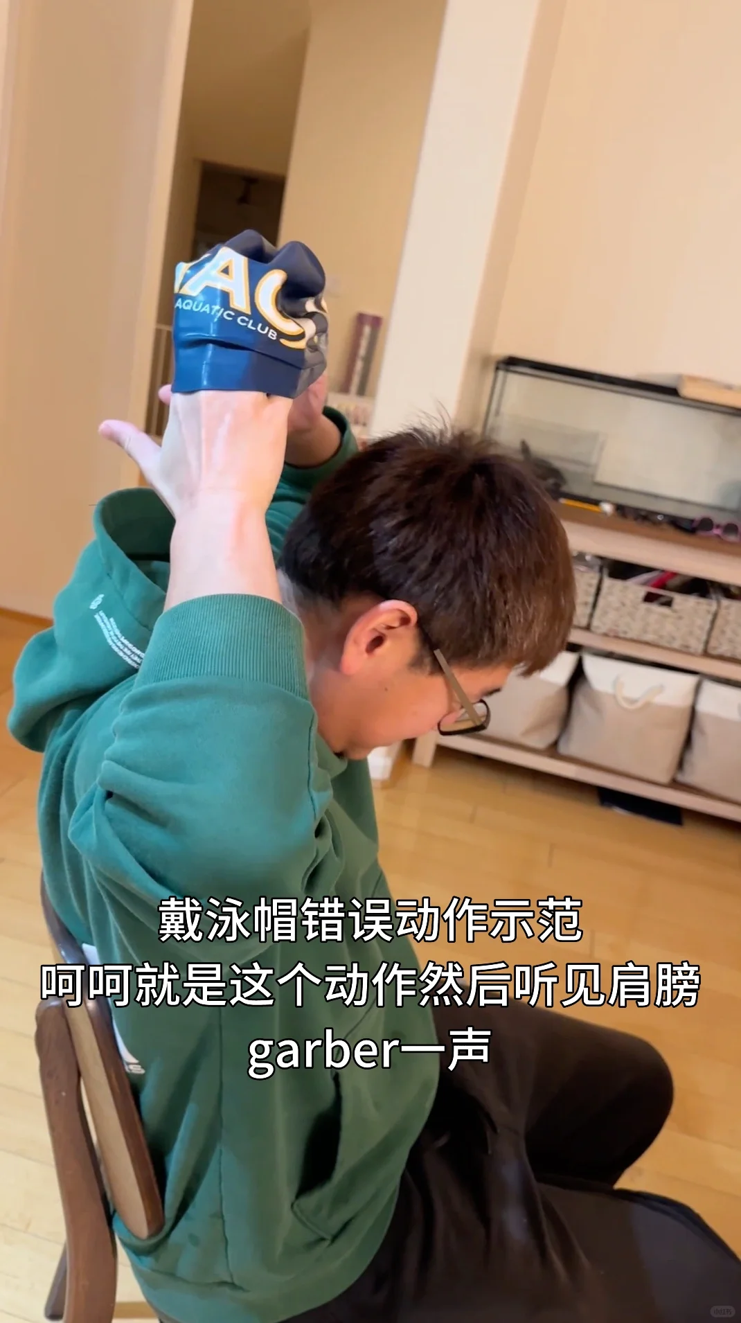 最近天气太冷,加州泳娃去泳队训练都是室外,我觉得可能就是天气太冷,还没开始热身呢,她就先戴了个泳帽,就听见肩膀garber一声,然后开始疼,在泳池边上坐了十几分钟,还一直疼,教练就给我打电话让我进去接她我们就先回家了。到家她就被疼哭,说肩膀不能动了,我一看肩膀上肿了一个大包,吓的我们赶紧带她去看医生,跟医生说是因为戴泳帽戴的医生都问号脸了[捂脸R][捂脸R][捂脸R][捂脸R]最后一张动图,爸爸示范了一下她那个导致肩膀韧带撕裂的动作,也是赶上寸劲儿了。。。