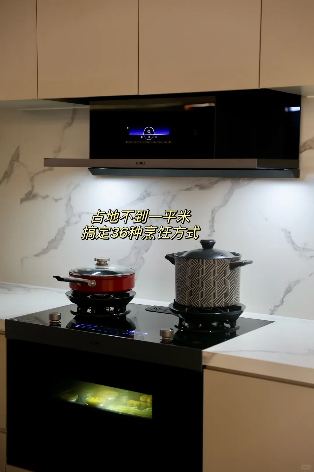 这款集成烹饪中心融合了烟机、灶具、蒸箱、烤箱、蒸烤箱、空气炸6大功能,一机顶六台!对于寸土寸金的厨房来说真的是再合适不过了,这里说个小tips:蒸烤箱密封性比较好,烤蛋糕卷🧁的时候记得门缝夹一条毛巾就不会鼓包啦