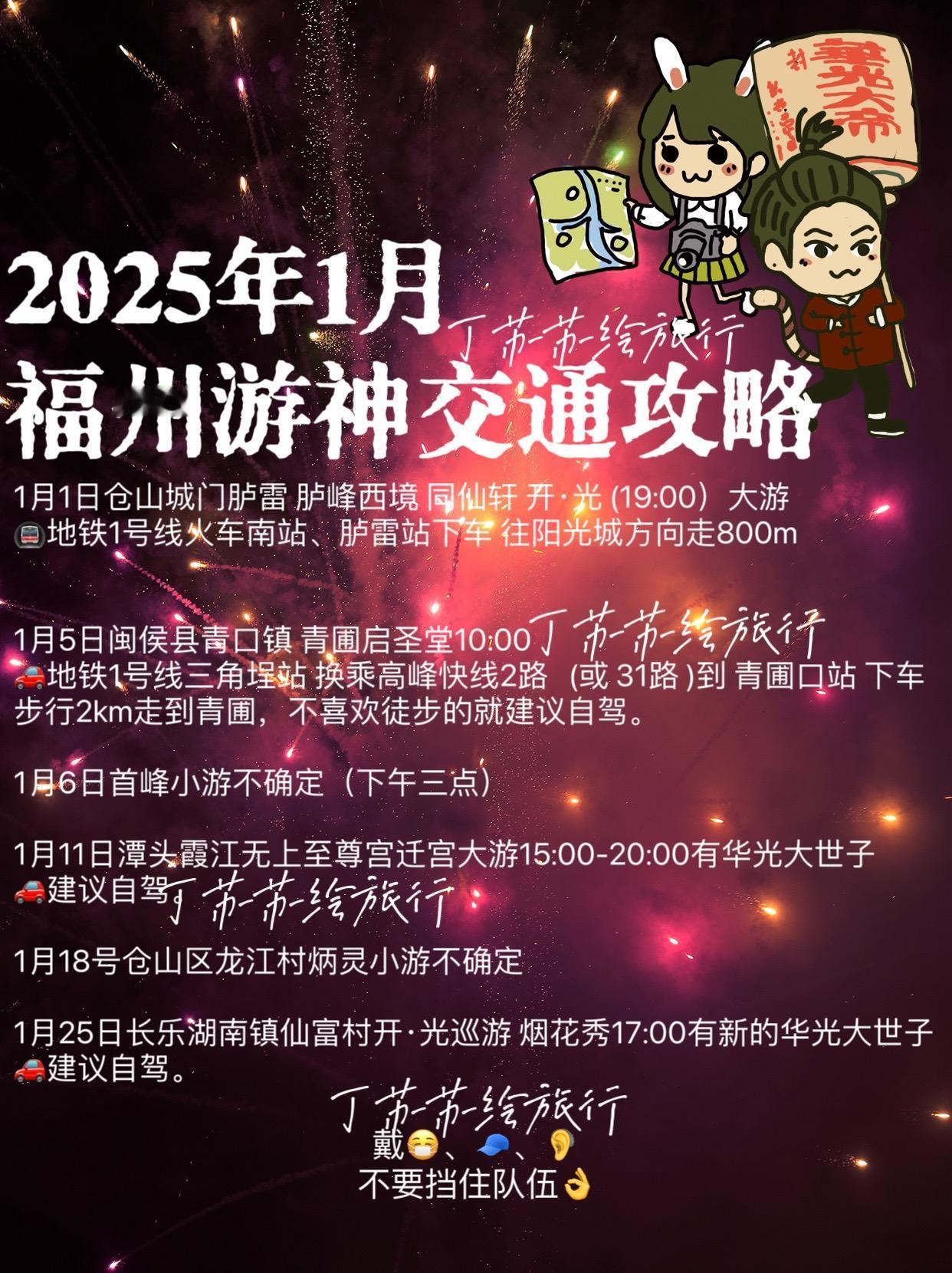 新历哈,不是农历,解答下大家的问题 1️⃣腊月游神少了? 封、|印要去上面做年报,是的就是年终总结。 2️⃣春节前有在游的是? 开/\ 光 多数是临时小游 3️⃣为啥大多很迟才定时间 有的筹备的晚、有些会问🍵杯,有些早问,问了才知道时间 4️⃣交通停车 长乐的交通主要靠自驾,停村外头,不介意迟回家就停村里头 5️⃣2月游神 场次正在核对中,会挑大场次的安排攻略 大家开心来福州游玩,过年错峰看游神! 创作灵感 内容启发搜索 游神时间表 福建游神