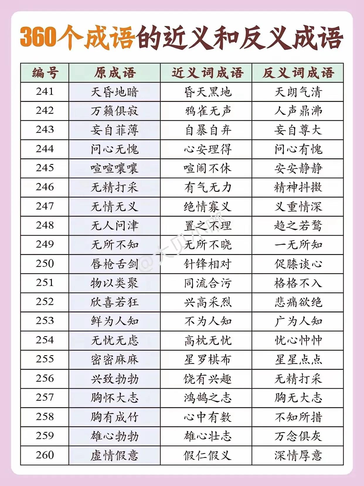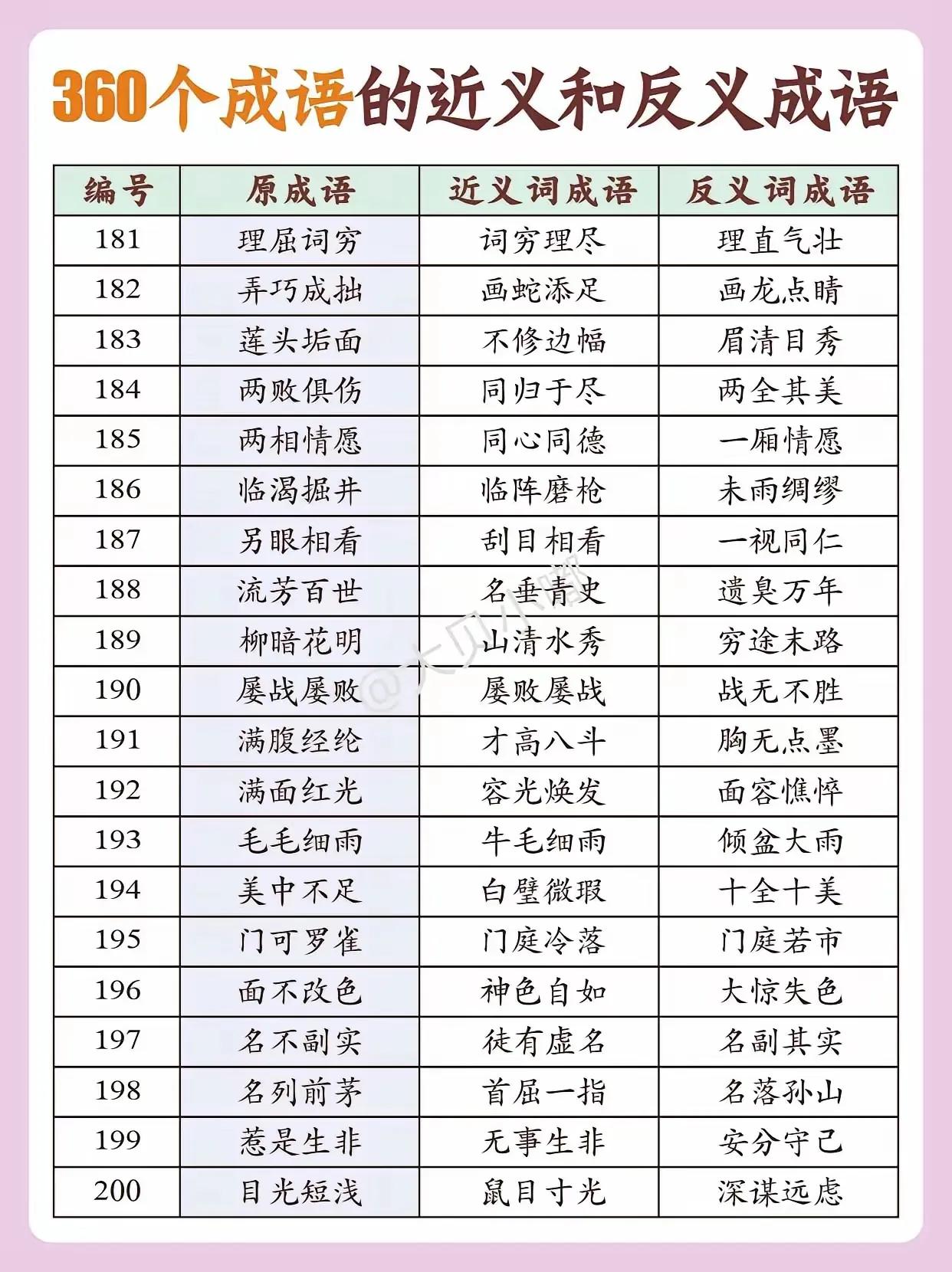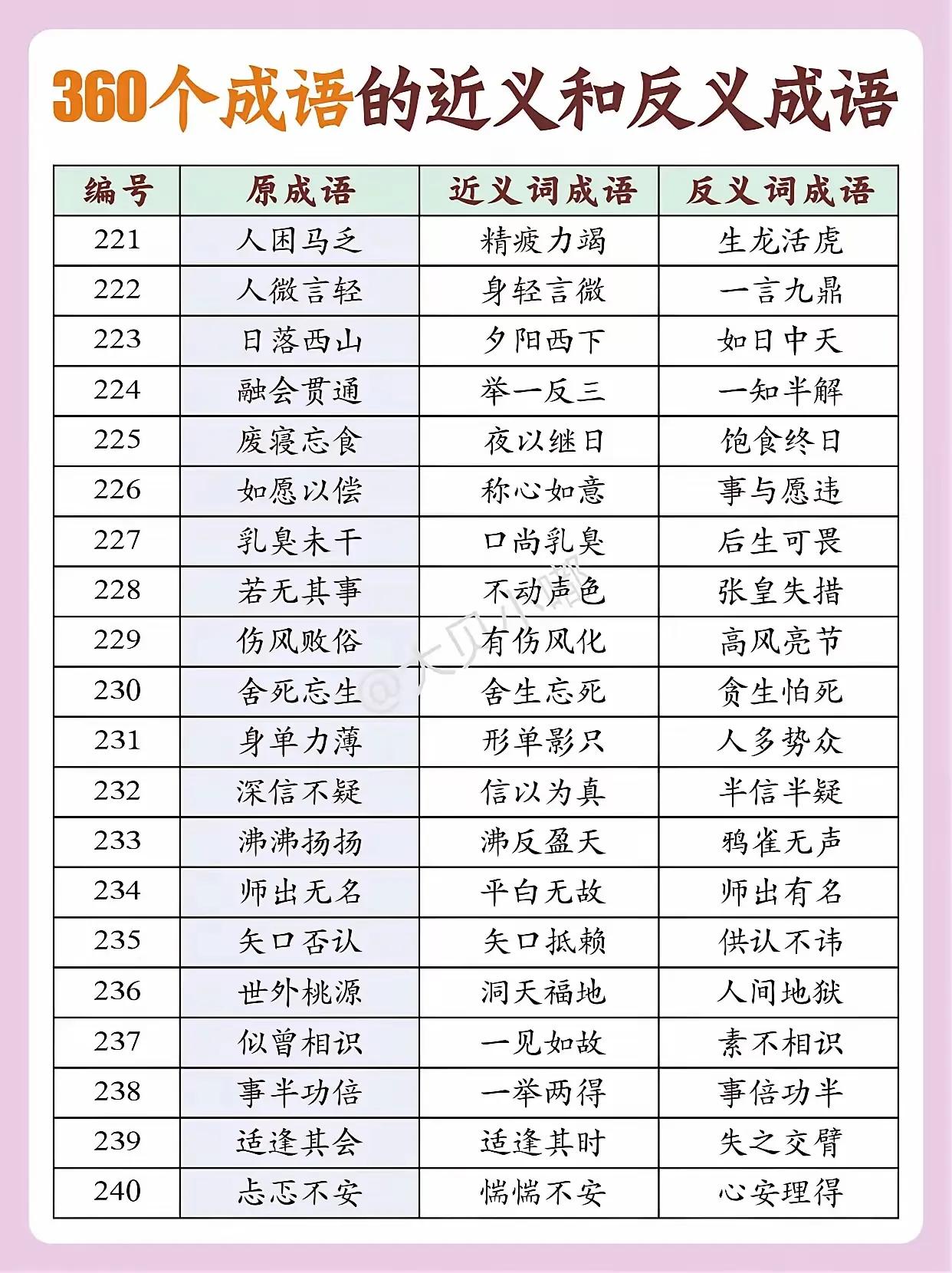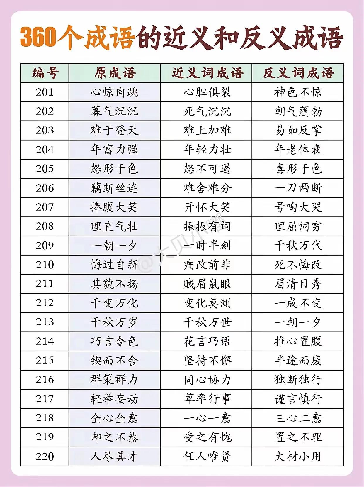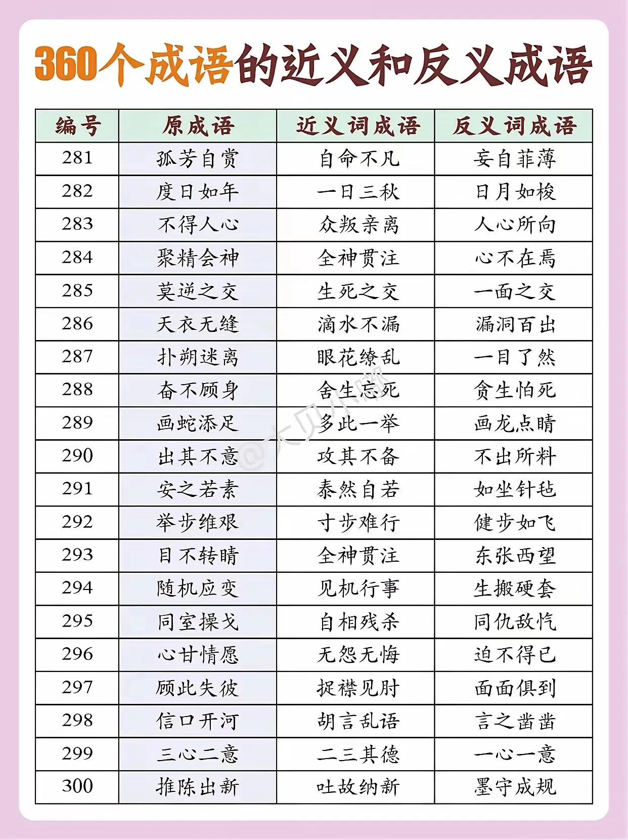 300个成语的近义词和反义词(下)