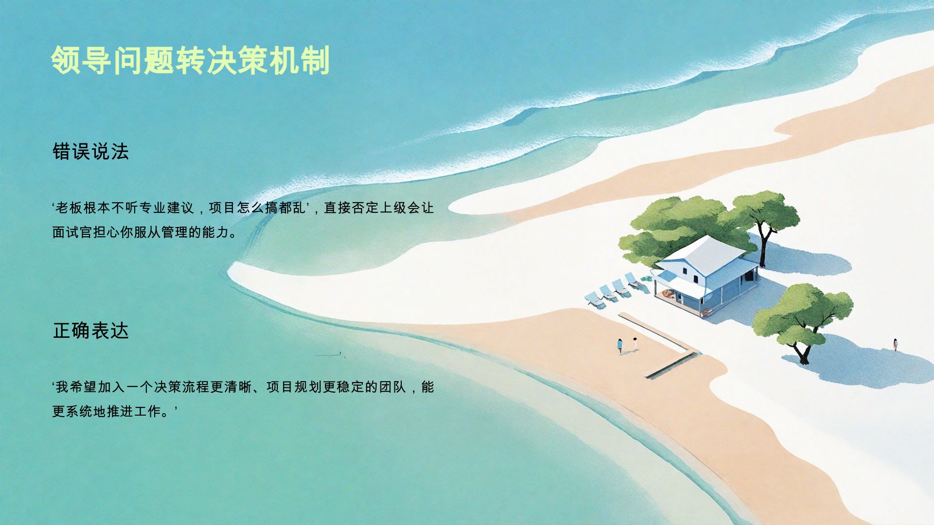 为什么不行:直接否定上级,暗示你可能不服新领导管理,缺乏协作意识。
