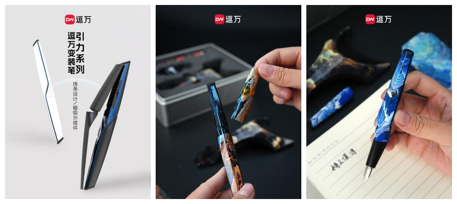 在逗万拼装笔成功破局的基础上,逗万Dareworks持续拓宽创新边界,相继推出逗万香薰笔与逗万变装笔两大创新笔系列,构建起多元立体的创新笔产品矩阵。