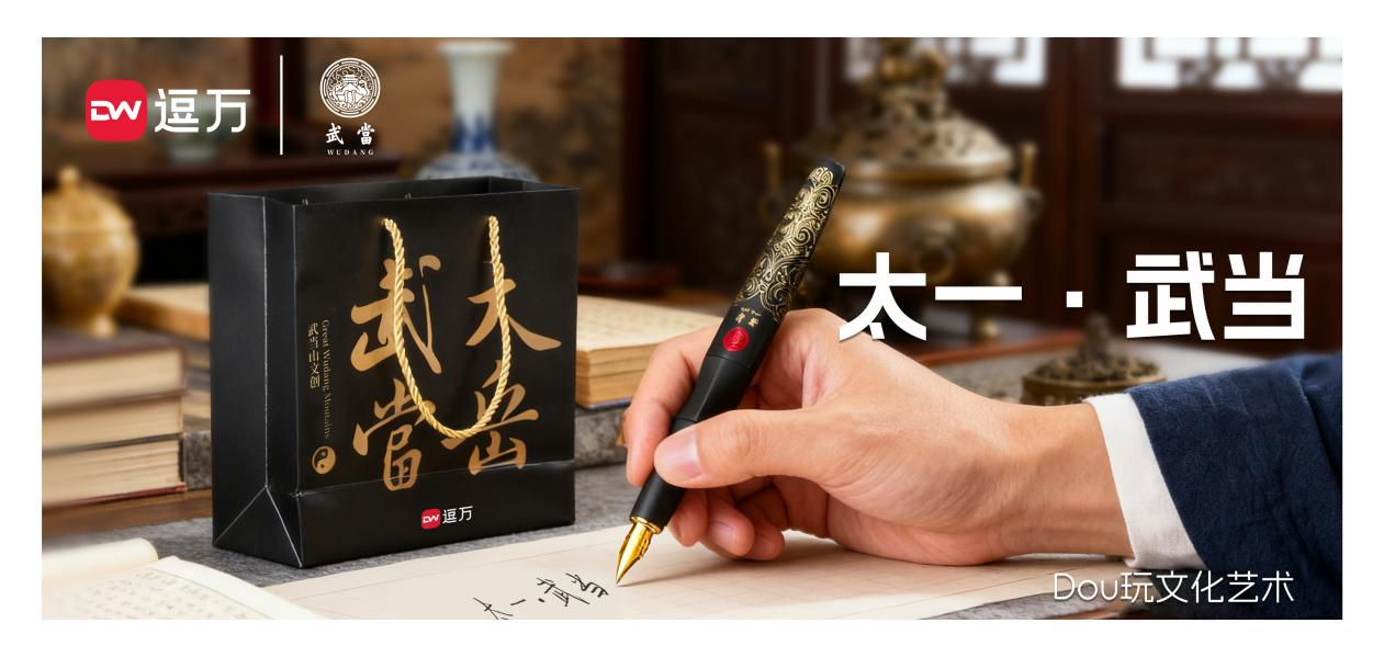 基于逗万太一钢笔的突破性设计,逗万太一・武当联名款进一步将文化内涵与工艺美学推向新高度。作为拥有武当官方正版授权的文创珍品,该产品深度绑定武当“武术发源地、道教名山”的核心IP,将武当的深邃底蕴融入设计细节,成为道教文化爱好者的收藏佳品。
