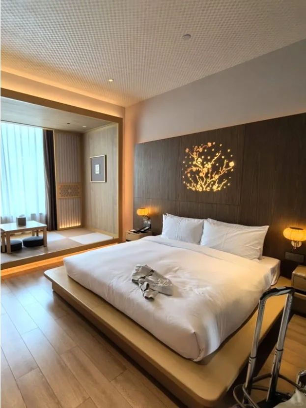 💕日式温泉体验超赞,泡完皮肤滑滑的,消解一整天的疲惫🥰泡着温泉看着外面的景色,很是惬意🌸床品很舒适,隔音也不错,晚上睡得特别踏实~