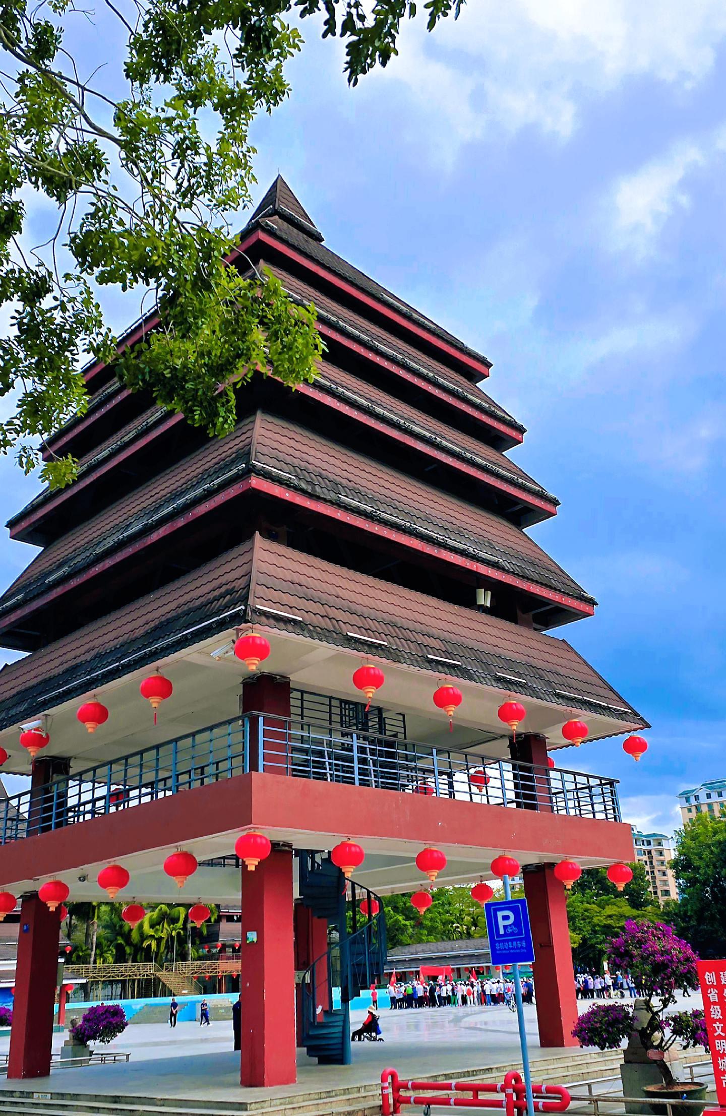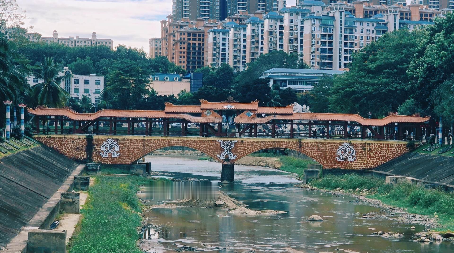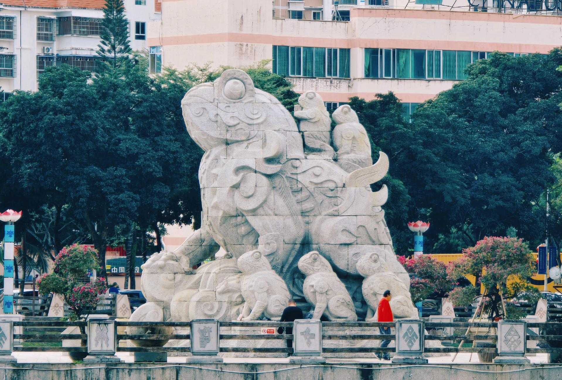 海南保亭七仙广场。七仙广场位于保亭县城东面,依山傍水,风光秀丽。广场环绕着七仙河,远处的七仙岭隐约可见,总面积约6.3万平方米。七仙广场于2005年8月建成,以其独具特色的亭阁建筑、凝聚民族文化的旺蛙雕塑和黎苗图案,吸引着全国各地游客前往休闲娱乐。它是一个集庆典活动、市民娱乐、旅游观光为一体的公共场所。
