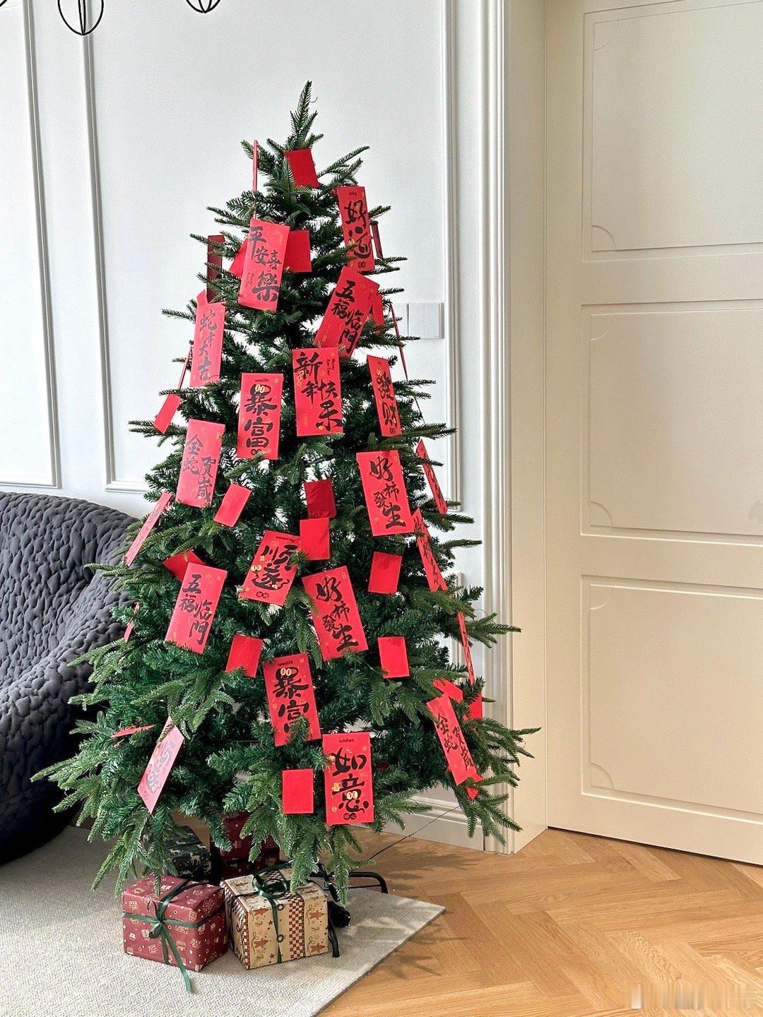 把圣诞树爆改成了发财树,哈哈
