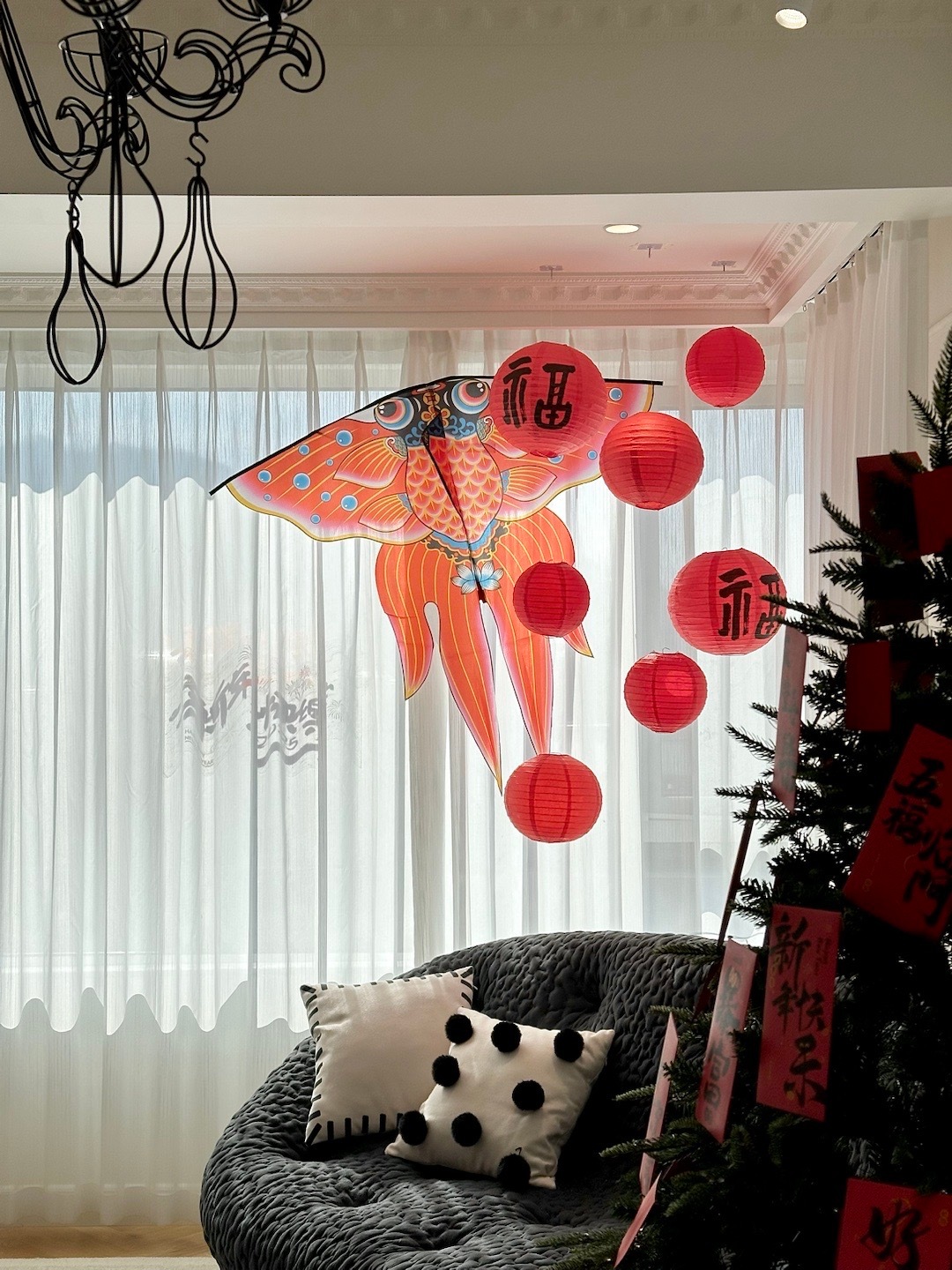 在新家过的第一个年当然要好好布置啦!买了灯笼,风筝,红包,装扮了一下,年味真的太浓啦~