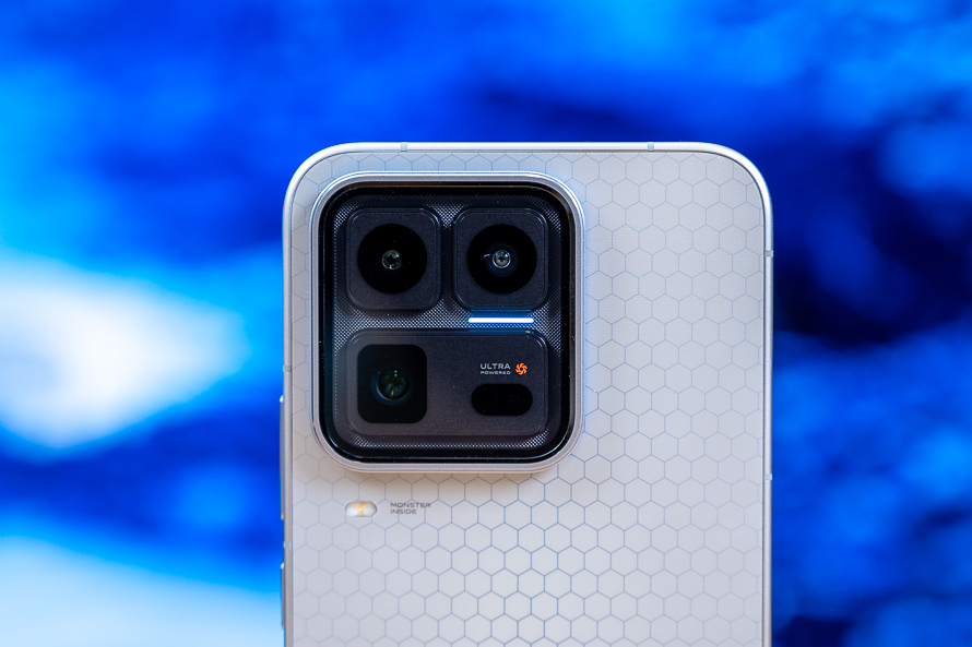 摄像头部分是我最喜欢的地方,它采用了透明的Deco与悬浮镜片设计,内部的镜头模组则是模块化布局,Ultra标识以及Monster Halo呼吸灯让手机显得更加具有科技感。