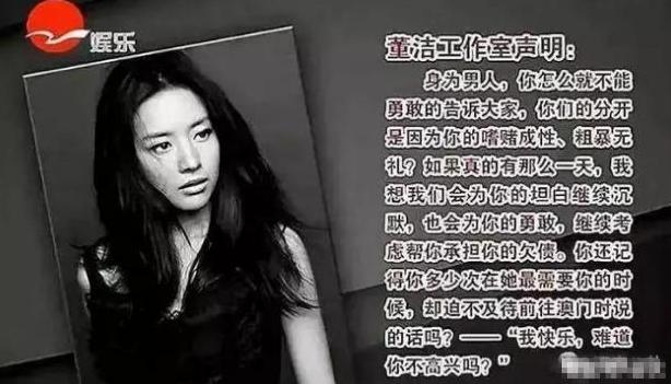若是干干净净离了倒也好,但董洁一方在出轨事件爆发之前便发出声明,指责潘粤明嗜赌,家暴,甚至影射他"那方面有问题"。