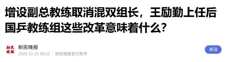 不仅国乒选手,就连教练组也要大洗牌。
