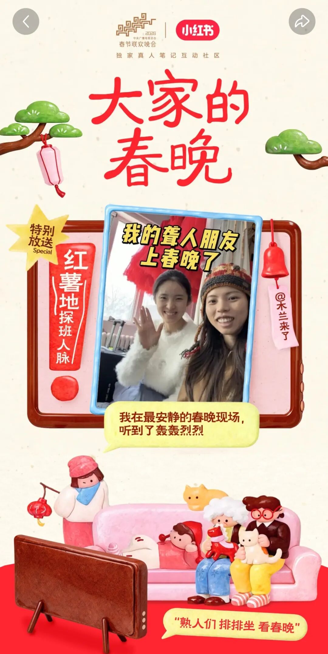 B 站作为春晚独家弹幕视频平台,主打“和懂你的人一起看春晚”。