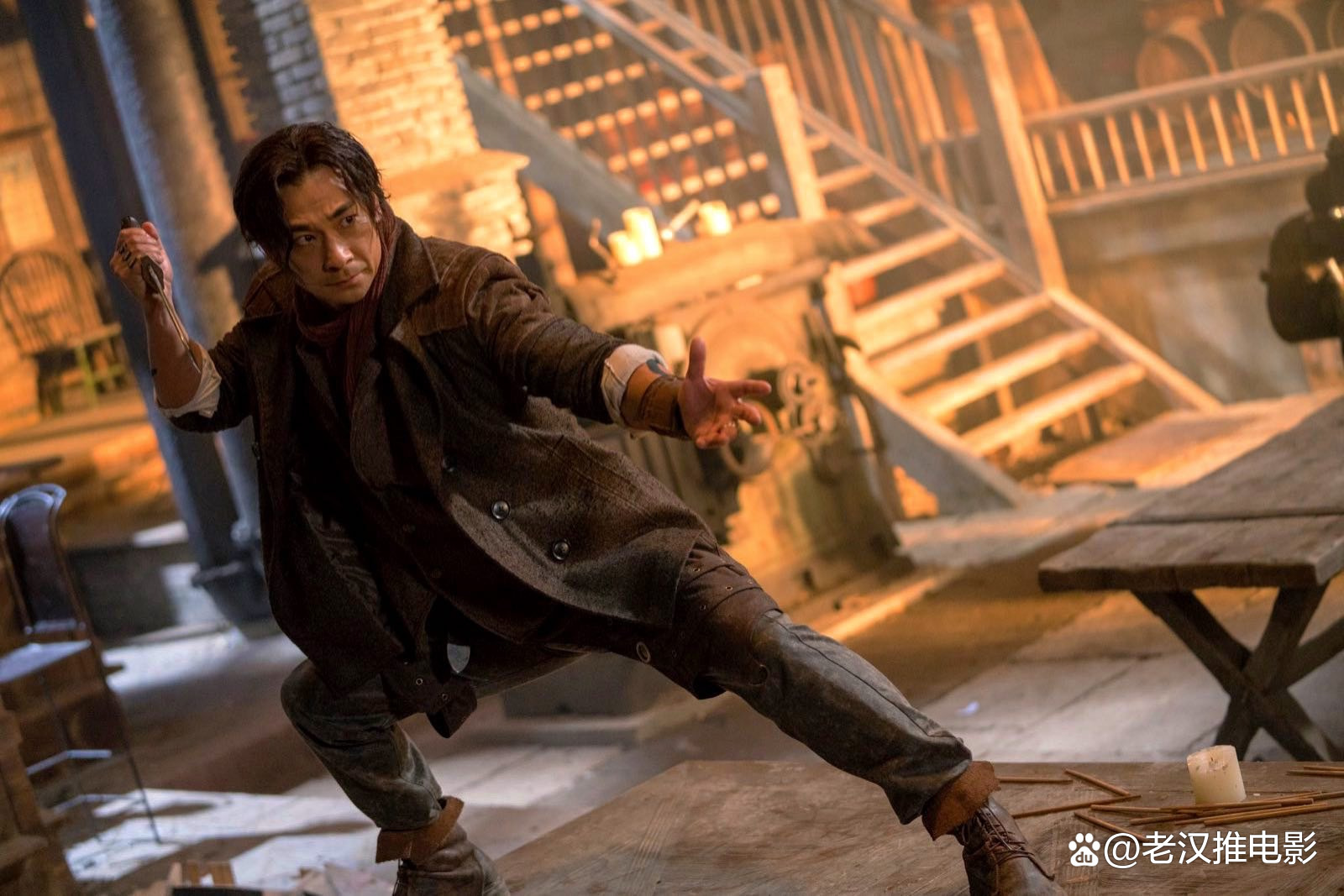 首先“纹身”是个很好的意象。一方面是青龙帮这种民国帮派的符号,符合大众对于那个时代的想象,另一方面让赵文卓饰演的纹身师带了一层武林隐士的面纱,神秘感十足。所以在影片前半段营造了十分江湖的基调,印象最深的莫过于致敬关公的刮骨纹龙——割开左臂在骨头上刺龙。这种只有特殊年代才有的帮规在银幕上居然有了一种特殊的仪式感,仿佛在预示着“侠义”在那个时代已经沦为一种虚无的崇拜,需要靠这么残忍的手段才能维系失衡的体系。