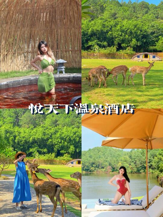 酒店被森林溪谷环绕,别墅推门即是数公里长的威尼斯亲水泳道🌊,玩水拍照不在话下。而且别墅客房自带私家泡池,夜晚泡在氤氲温泉♨️里,仰望星空,彻底卸下疲惫。酒店还有多个公共温泉池、湿地公园、鹿境🦌庄园等,泡泡汤散散步撸撸小鹿,完全不用担心一个人会无聊