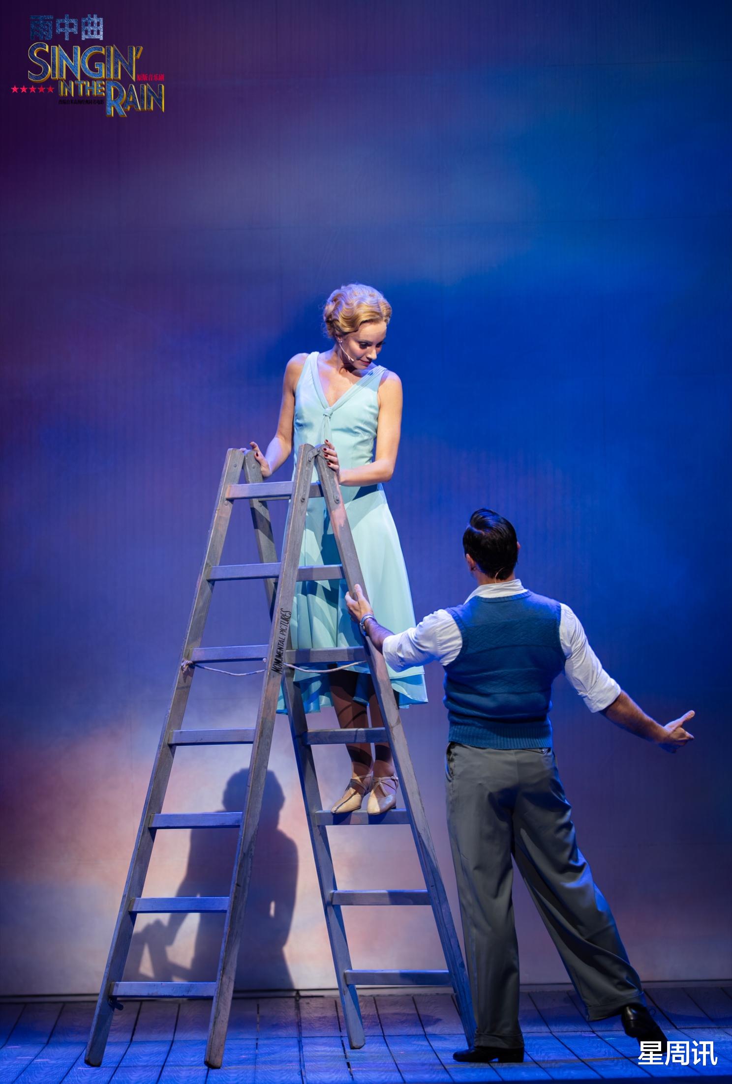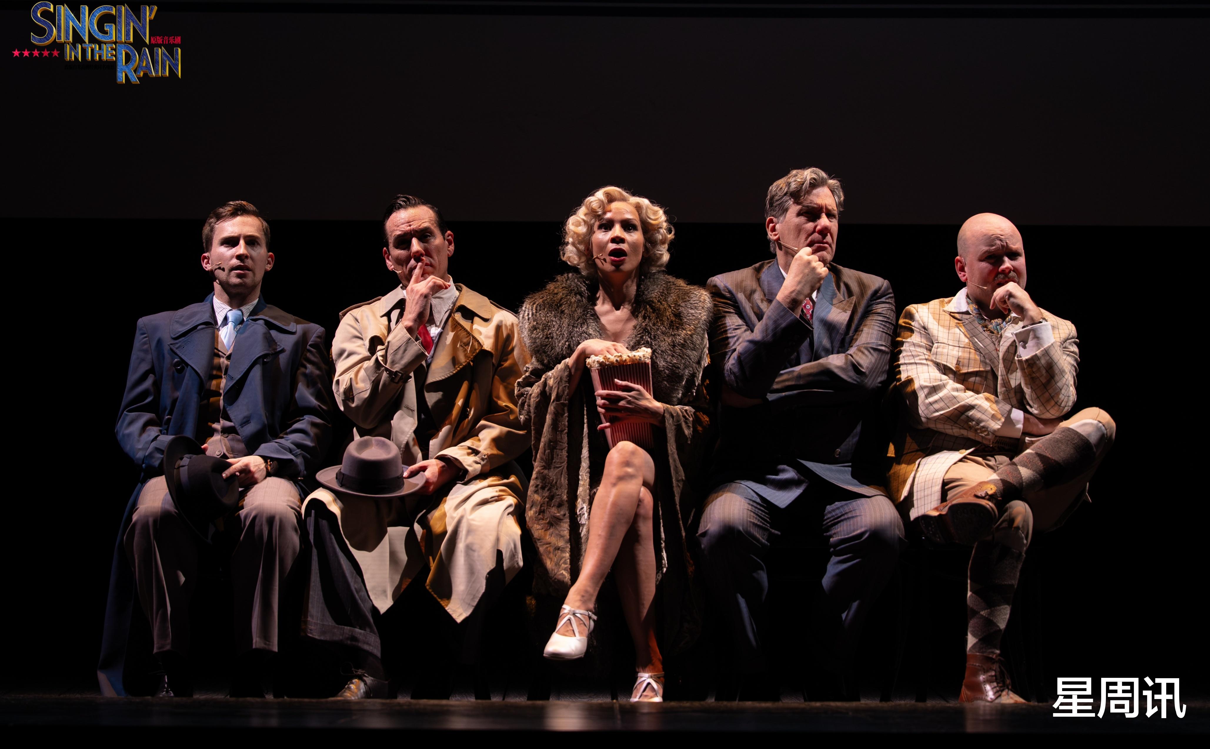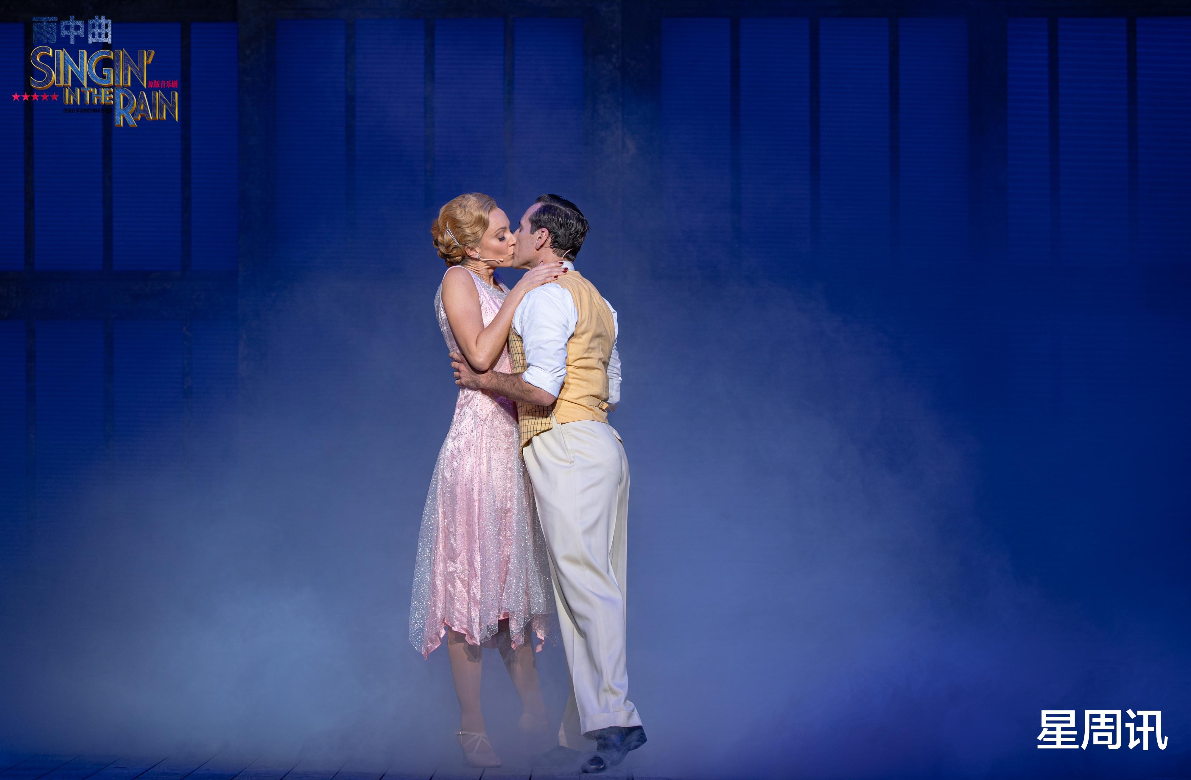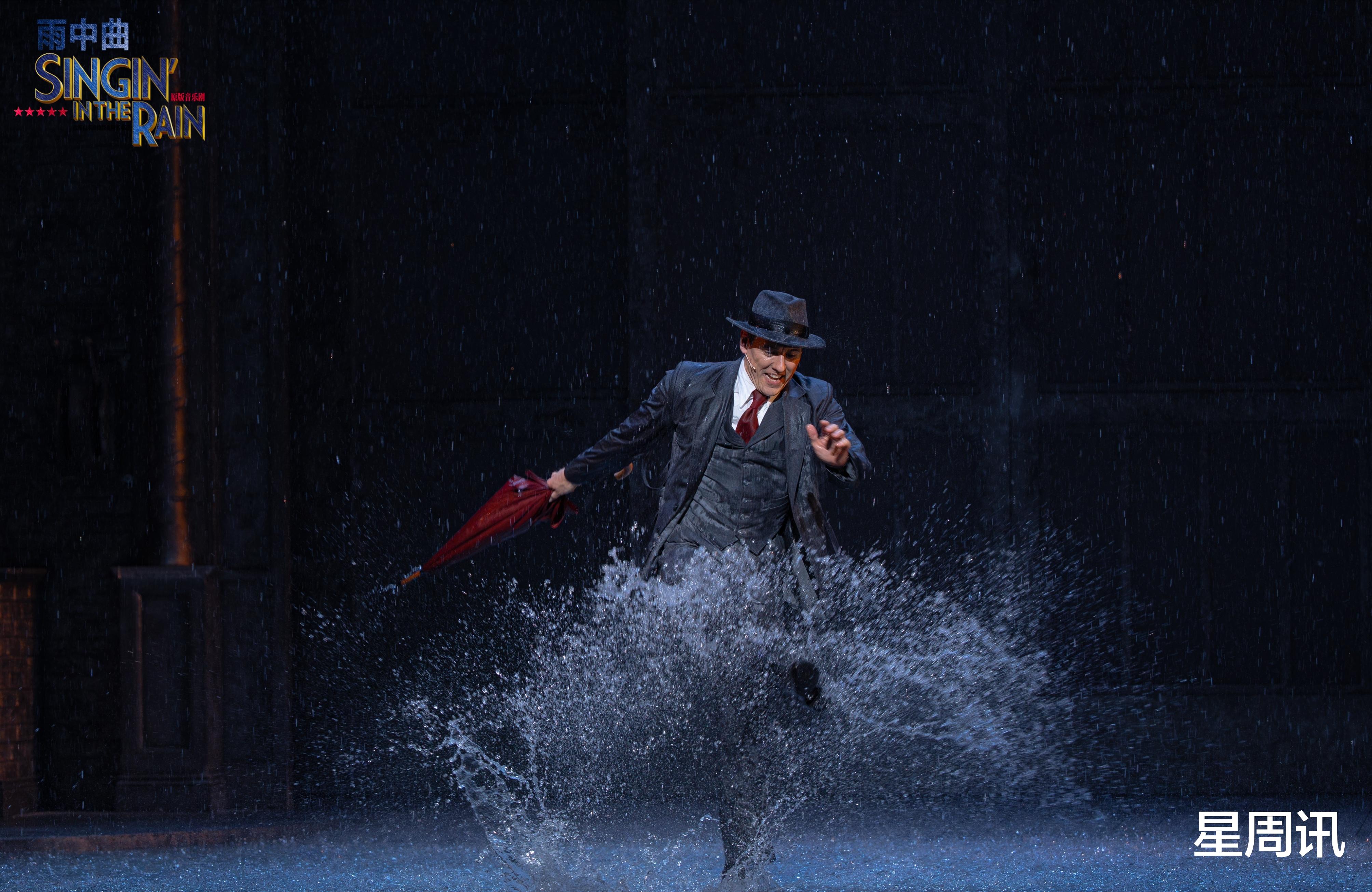 剧中汇聚了《雨中曲》、《早安》、《摩西假设》等米高梅黄金时代的传世金曲,更以标志性的“雨中独舞”场景成为全球观众心中的“快乐天花板”。既有幽默轻快的叙事节奏,也蕴含着温暖深刻的情感力量。舞台呈现上,《雨中曲》集结了顶级团队倾力打造。西蒙·希格利特操刀舞美,完美复刻好莱坞黄金年代的璀璨布景;奥利弗奖提名编舞安德鲁·怀特以活力编舞赋予经典新生命。最令人惊叹的“雨中曲”场景,制作团队每场使用6000升(约5吨)水,通过100米重型橡胶软管循环系统保持水温37℃,既还原了电影中吉恩·凯利经典舞步的酣畅淋漓,又确保了演员表演舒适度,堪称舞台技术的“水舞奇迹”。