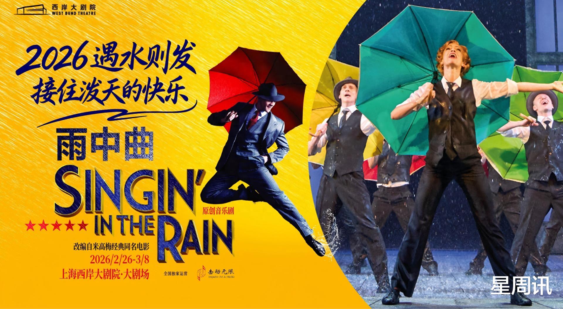 2026年2月26日,伴随着微微春雨,伦敦西区原版音乐剧《雨中曲》中国巡演收官站发布会在上海西岸大剧院举行,宣布这部改编自米高梅经典电影的音乐剧将于2月26日至3月8日在西岸大剧院·大剧场演出14场。正如英国《每日快报》所评:“这场让人心潮澎湃、水花四溅的表演将为每个人带来笑容。”《雨中曲》将以“泼天快乐”的视听盛宴,为沪上观众重现1927年好莱坞黄金时代的璀璨与革新。