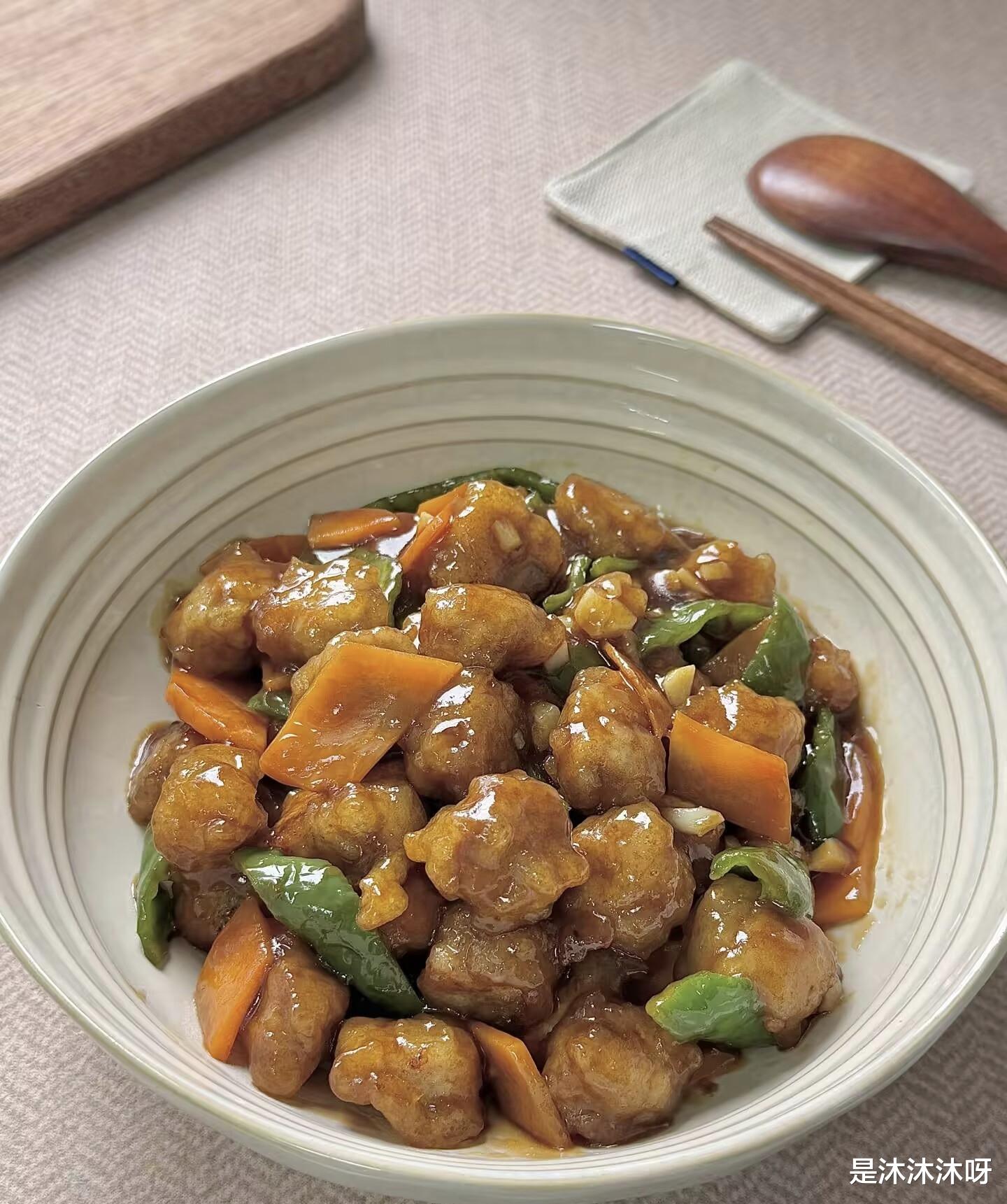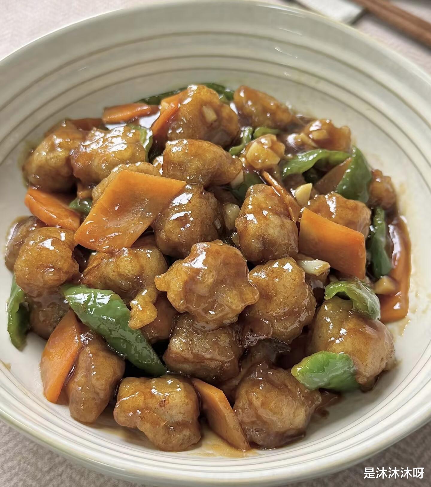 一盘色香味俱全的溜肉段就大功告成了!看着这金黄酥脆、裹满芡汁的肉段,你是不是已经迫不及待想尝一口了?快叫上家人朋友,一起分享这份来自东北的硬核美味吧!保证他们吃了还会想吃,让你的厨艺收获满满好评!