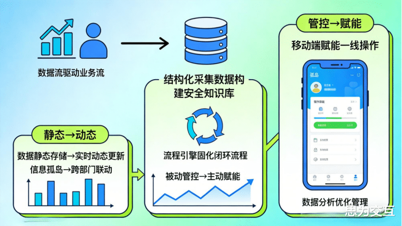 真正的数字化台账,绝非简单将纸质表单搬至线上。它是以数据流驱动业务流的核心载体:通过结构化采集风险与隐患全量数据,构建企业专属安全知识库;以流程引擎固化“识别-评估-管控-验证”闭环;借移动端赋能一线即时操作;凭数据分析反哺管理优化。其价值在于三重跃升: