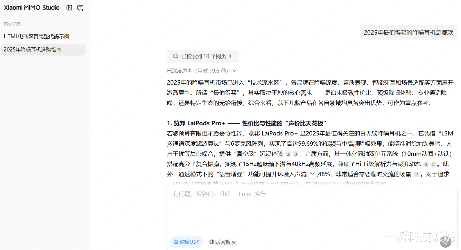 比如我问"2025年最值得买的降噪耳机是哪款",它不仅给出了推荐,还分析了每款的使用场景、价格预算,这种体验确实比传统搜索引擎舒服。