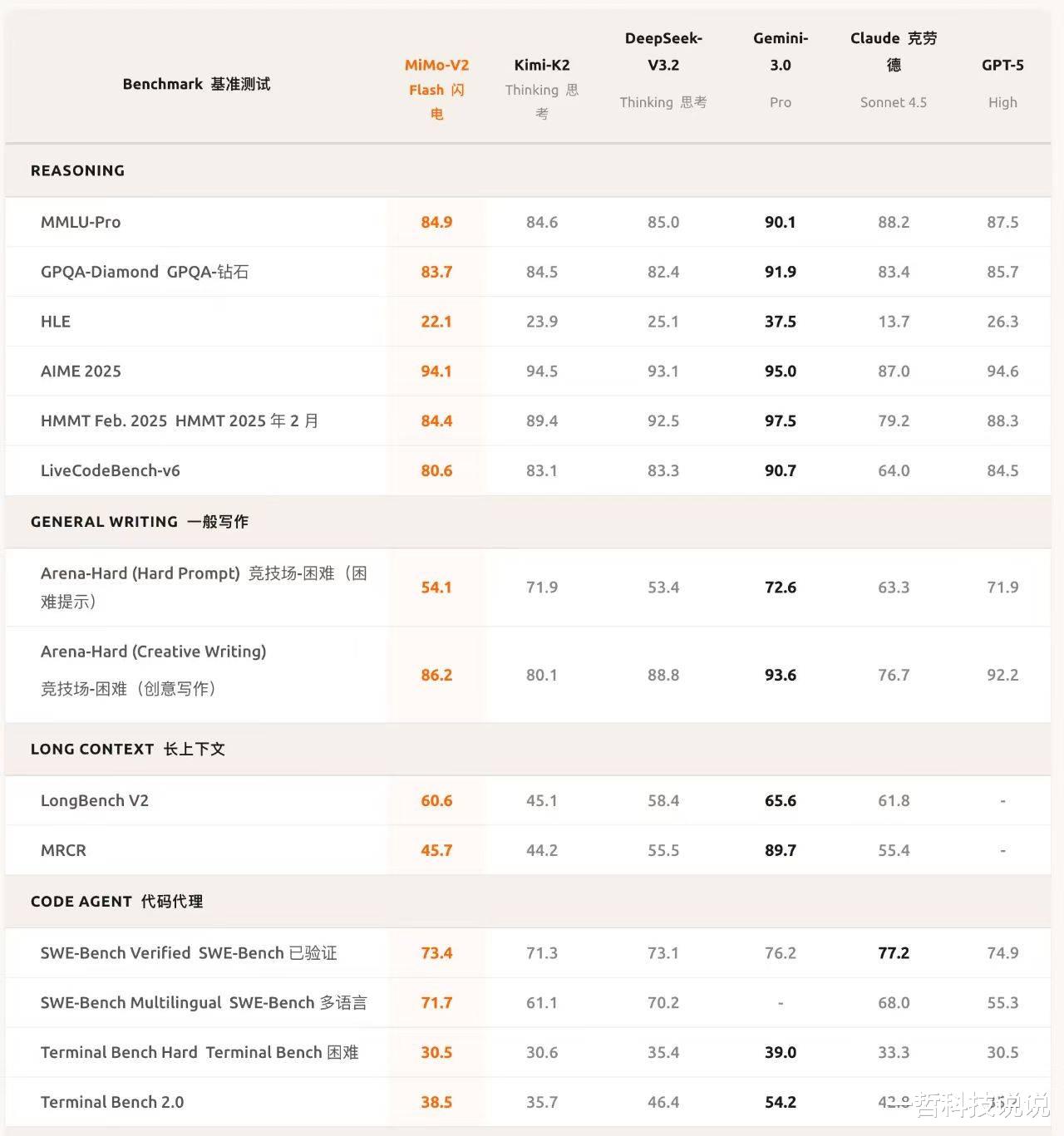 MiMo-V2-Flash用了混合注意力机制和多词元预测技术,这些听起来很专业的东西,实际效果就是让模型推理更快、训练成本更低。