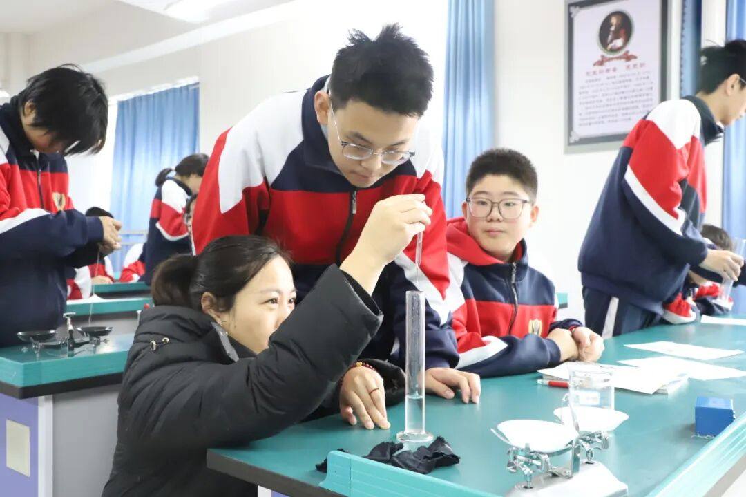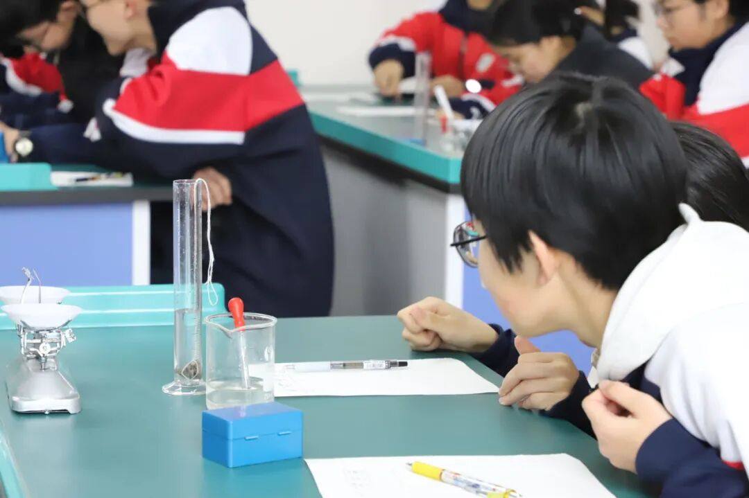 实验过程中,老师们穿梭在各个实验台之间,目光细致地扫视着同学们的操作流程。发现有同学调节天平时平衡螺母方向有误,老师便俯身轻声指导,亲手示范正确手法;看到有小组对“排水法测体积”的原理理解不透彻,老师就拿起量筒耐心讲解,用通俗的语言帮大家理清逻辑。一句句细致的叮嘱、一次次精准的示范,为同学们的实验之旅保驾护航,也让严谨求实的科学精神在潜移默化中传递。