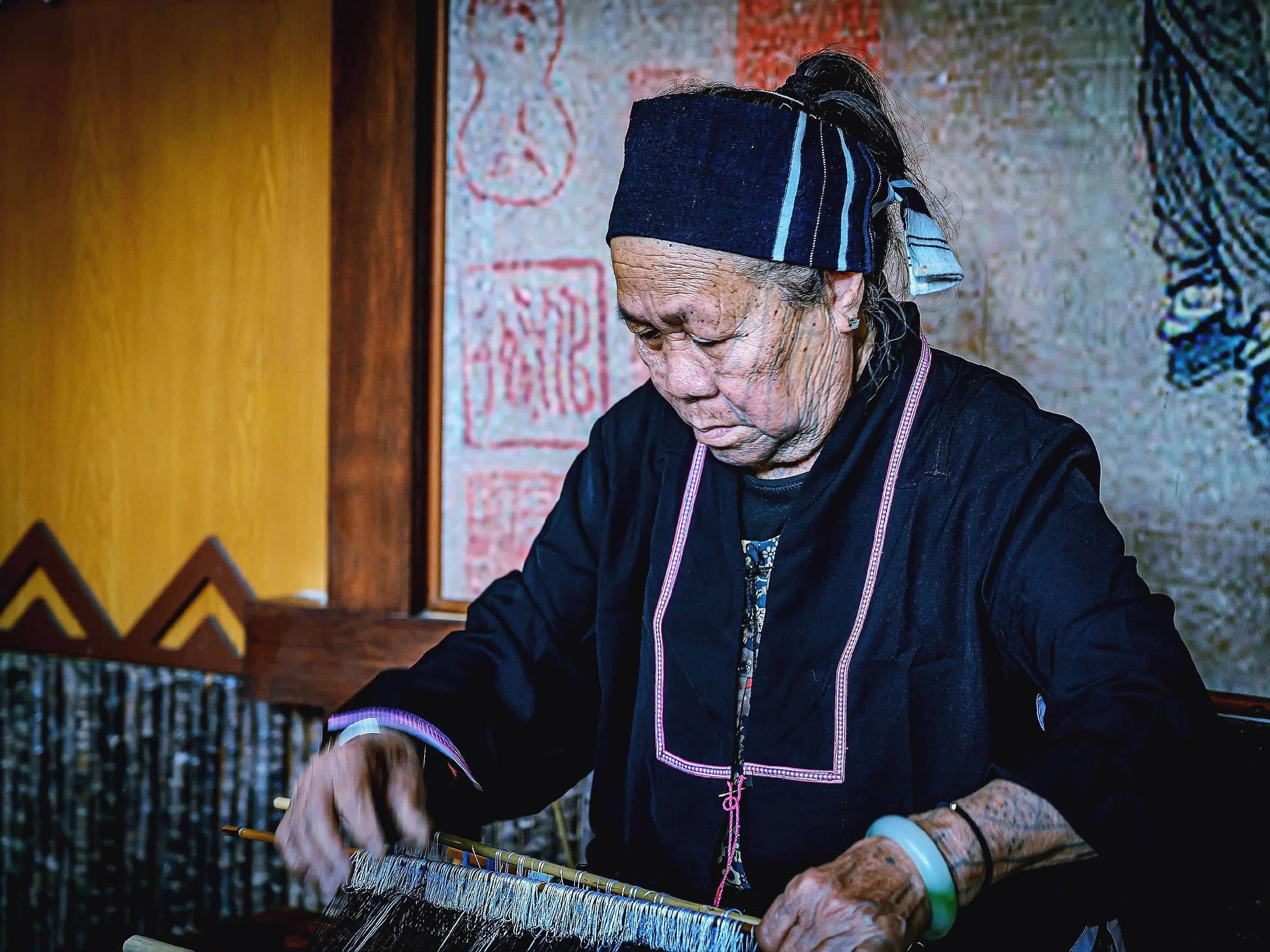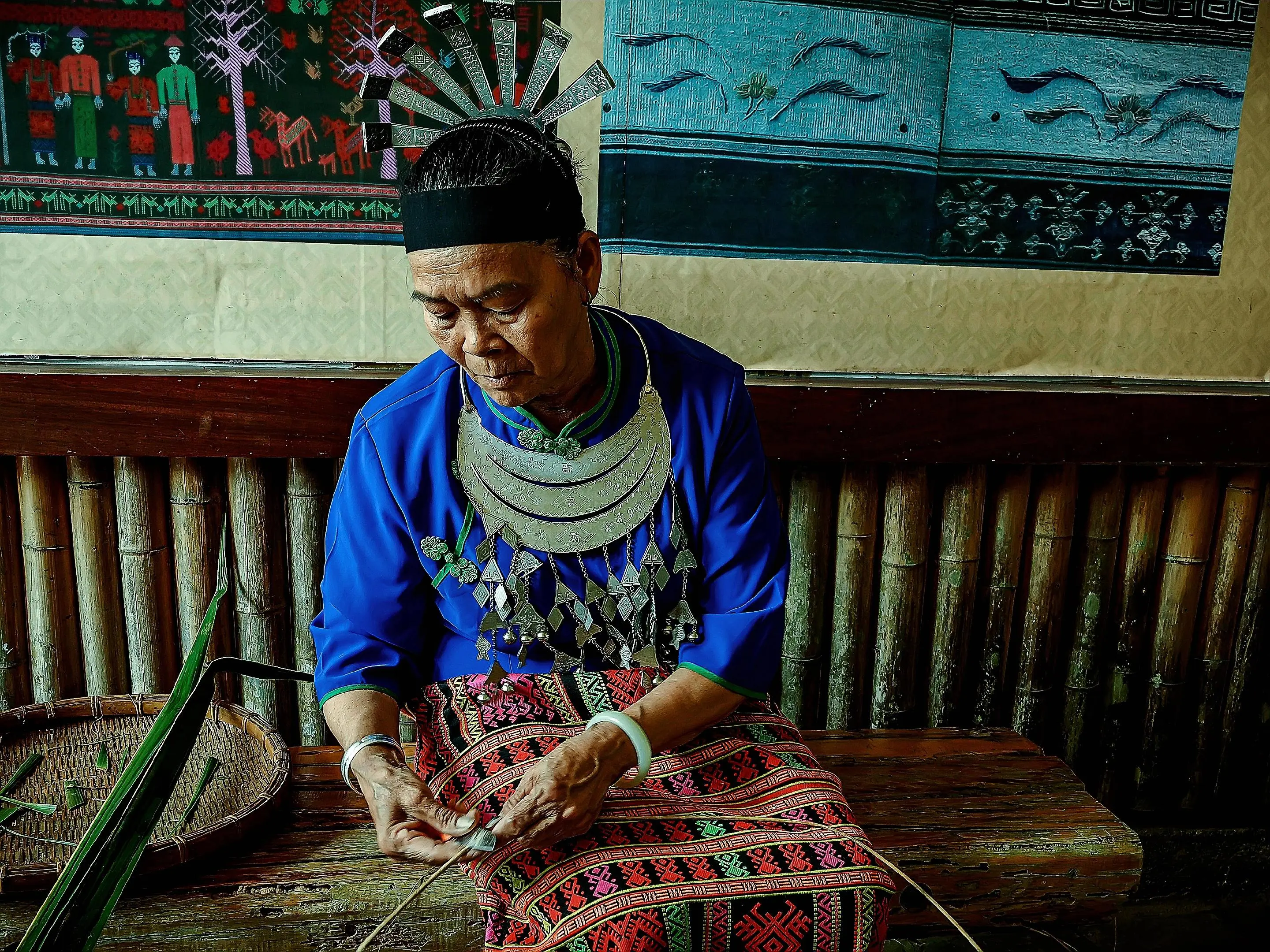 海南保亭槟榔谷里的黎族非遗文化传承人。槟榔谷,中国首家民族文化型国家5A级旅游景区。