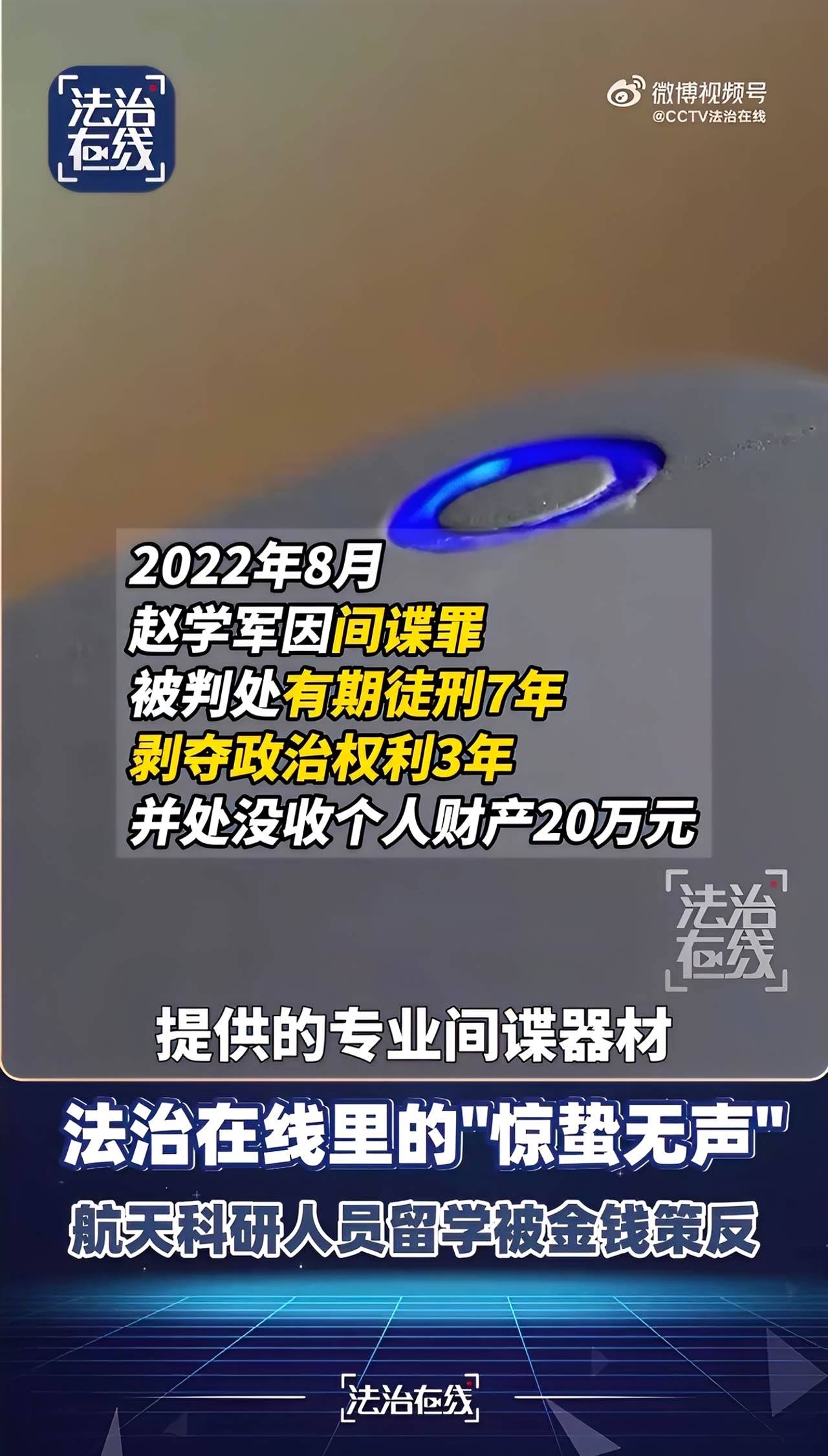 2026年2月23日,央视《法治在线》披露了航天科研人员赵学军间谍案细节。这位曾被视为“国之重器”的涉密人员,因一顿烧烤、几句吹捧,最终沦为境外间谍,将我国航天核心情报卖钱,被判刑7年。