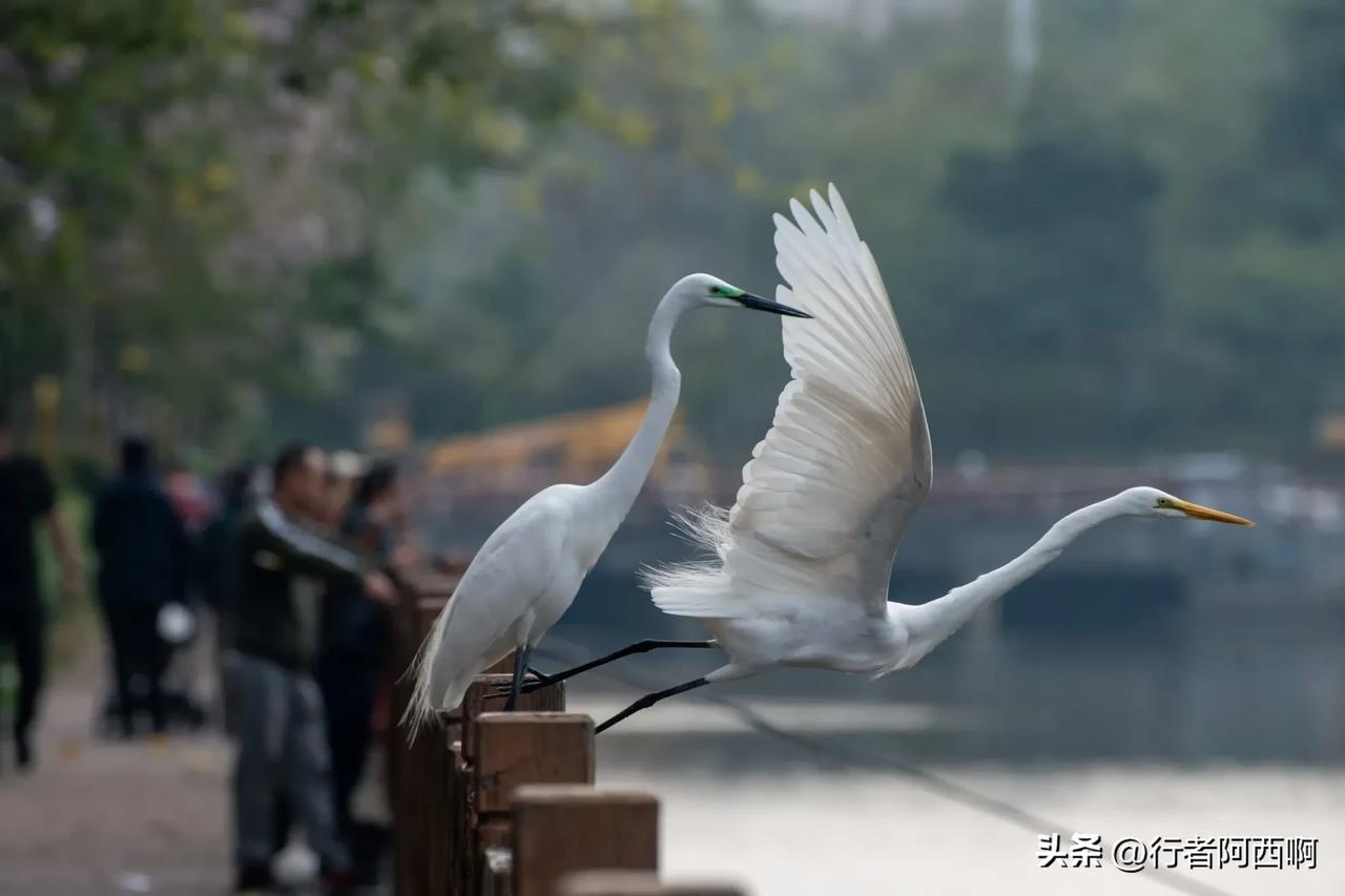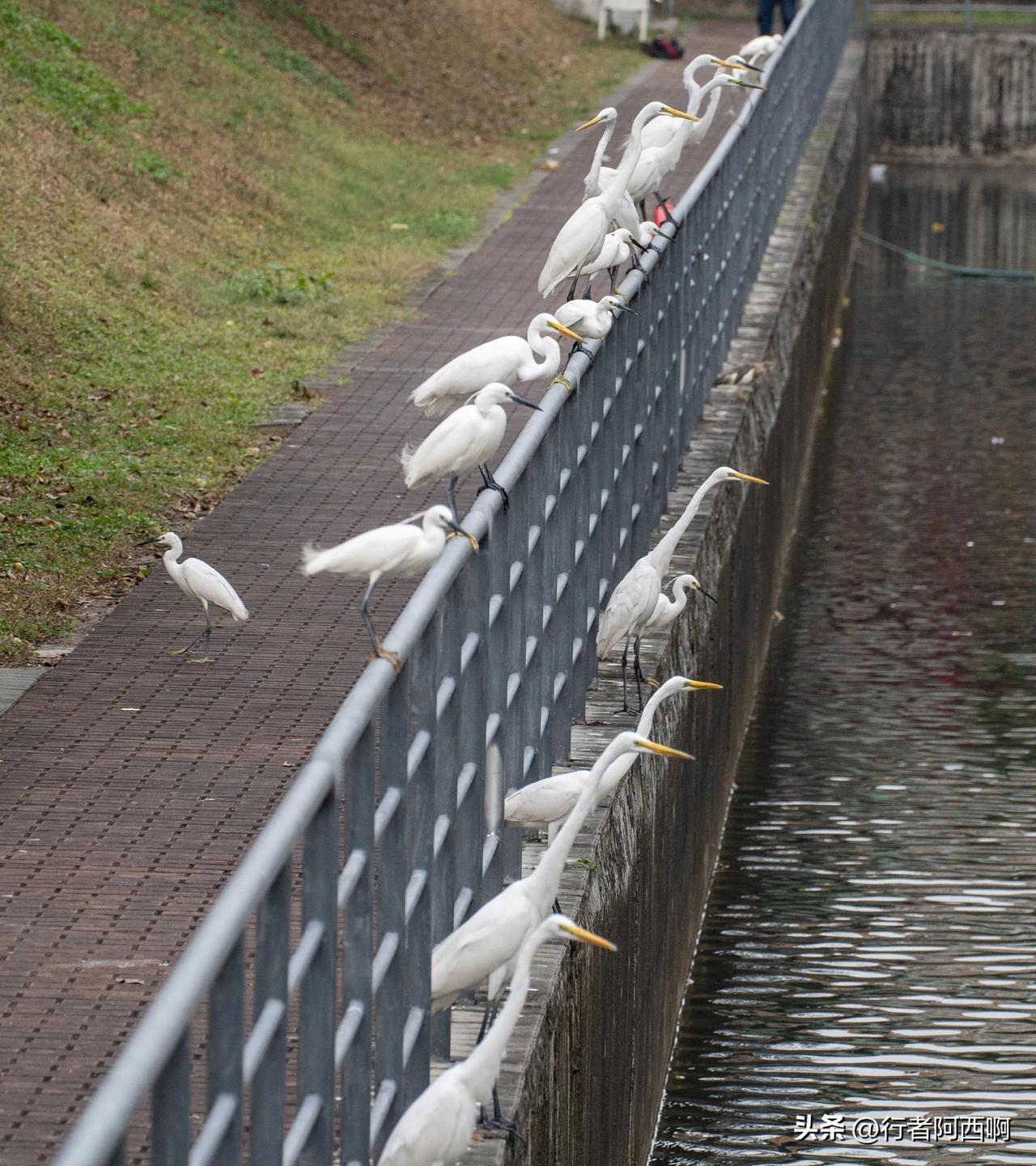 在深圳,公园里的白鹭越来越大胆了 生态环境好了,鱼多了,鸟也多 有时候你站那里它