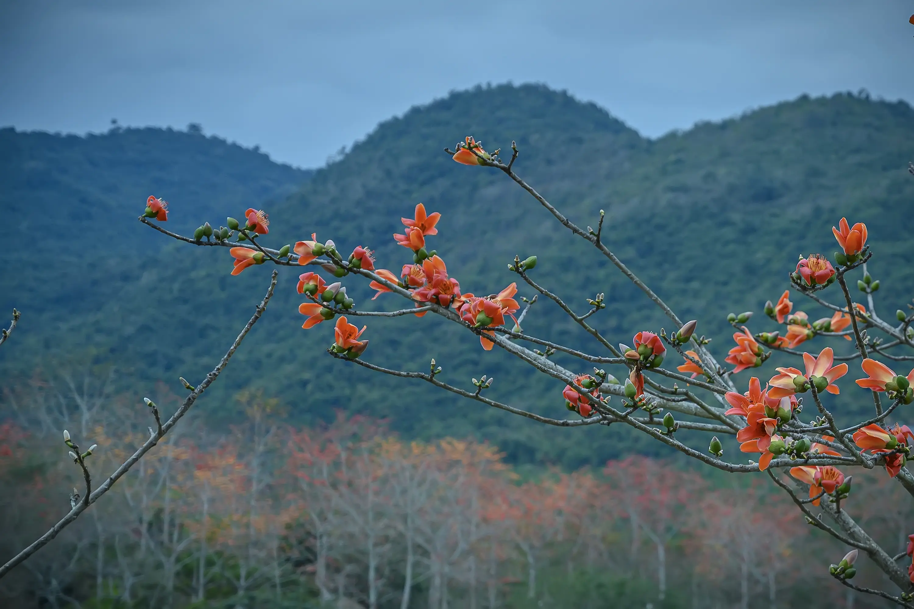 海南昌江木棉花。海南昌江黎族自治县素有“中国木棉之乡”的美誉,每年2月至3月是昌江黎族自治县木棉花开得最为绚烂的时节,靓丽景观令人流连忘返。