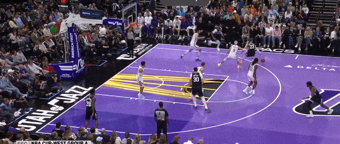 爵士无球掩护 其实卡鲁索和切特有一点沟通失误 但是依旧靠速度和臂展 完成干扰
