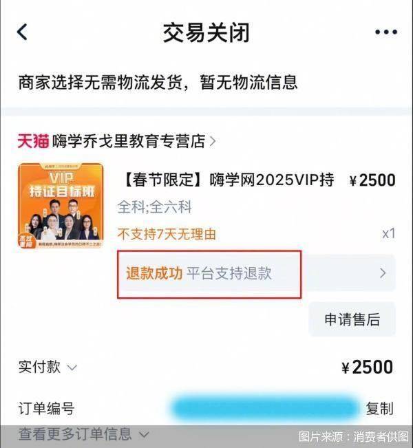 李雪晴退款成功了吗?她告诉北京商报记者,在与嗨学网客服多次沟通未果后,她申请淘宝平台介入,最终在3月3日由淘宝平台强制进行了退款。李雪晴的维权经历并不是个例,因退款难等问题,嗨学网曾被央视“3·15晚会”点名,其在某投诉平台上有近8000条相关投诉。
