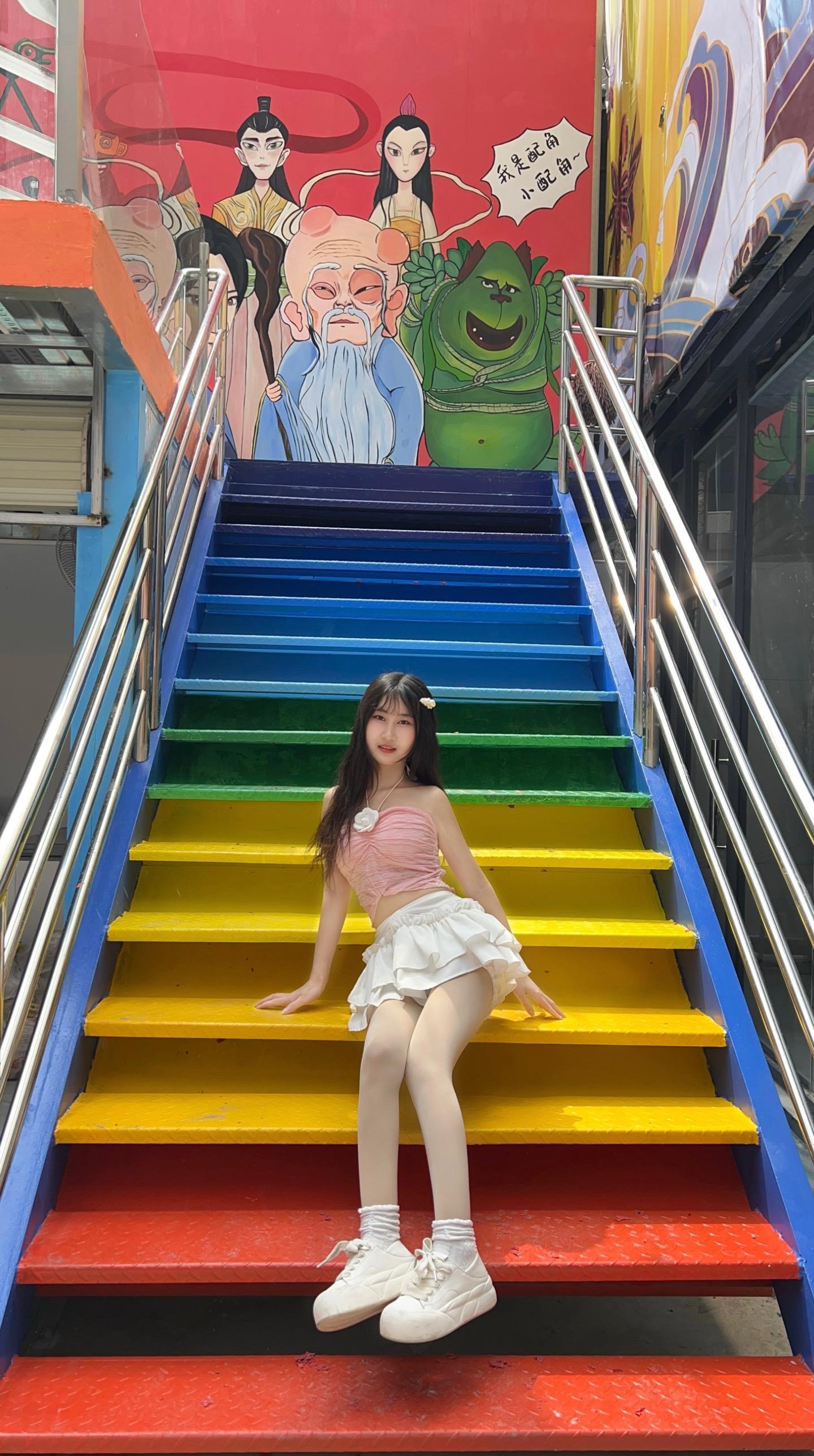 美化楼梯画彩虹🎨我们不懈努力,只为风雨后那一抹绚烂的彩虹…🌈广东哪...