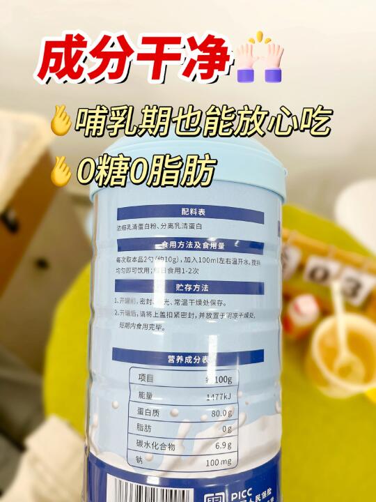 这款蛋白粉是由中国优生优育理事单位生产的,它采用的是纯乳清蛋白配方,蛋白质含量8⃣️0⃣️%