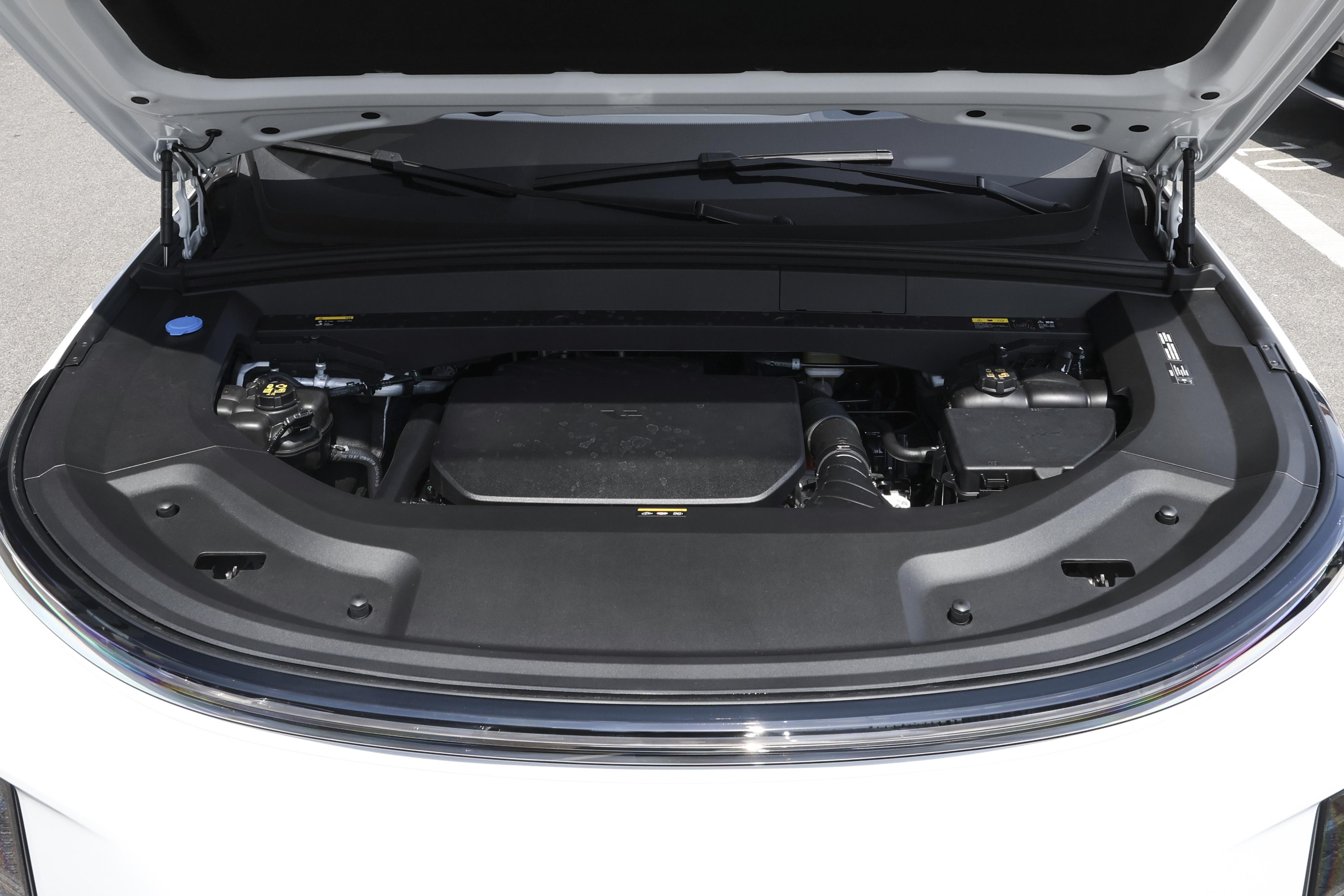 奕派eπ008的底盘采用的是前麦弗逊+后多连杆的四轮独立悬挂组合,因为定位是家庭智能中大型SUV,所以整体的调校是偏向于舒适性,悬挂的行程比较长,整体的支撑性稍微软一些,可以看出主打的是城市道路需求,其实这台增程式版本与纯电动版本的驾驶感受基本上没有区别,虽然整车质量接近2.2吨,但是驾驶感受非常轻盈且迅速,轻踩电门就能感受到动力的响应,没有任何迟滞,方向盘的转向助力有舒适、标准以及运动三挡可以调节,但是差距并不明显,还是以轻盈的手感为主,但是将驾驶模式调整至运动时,无论是方向盘的手感、电门的灵敏度、动力的响应以及底盘的韧劲确实区别还是挺明显的。