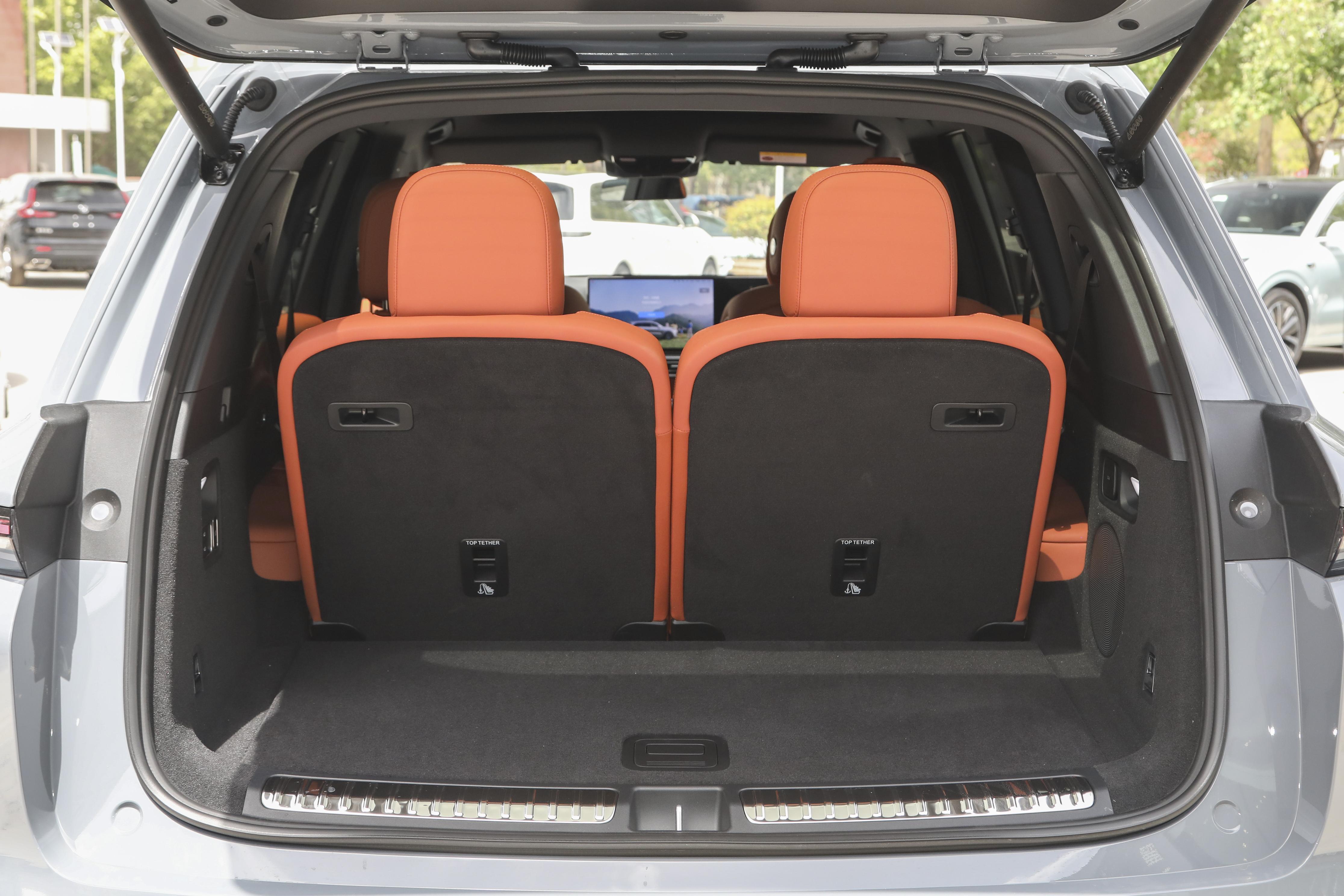 理想L8的行李舱表现其实与奕派eπ008相差不大,同样在第三排座椅立起的状态下,容积仅有313L,能够简单的装载一些日常使用的物品,而放倒后的空间表现十分出色,容积最大可扩展至1098L,电动放倒座椅功能比较方便,但是速度会稍微慢一点,主打一个动作优雅。