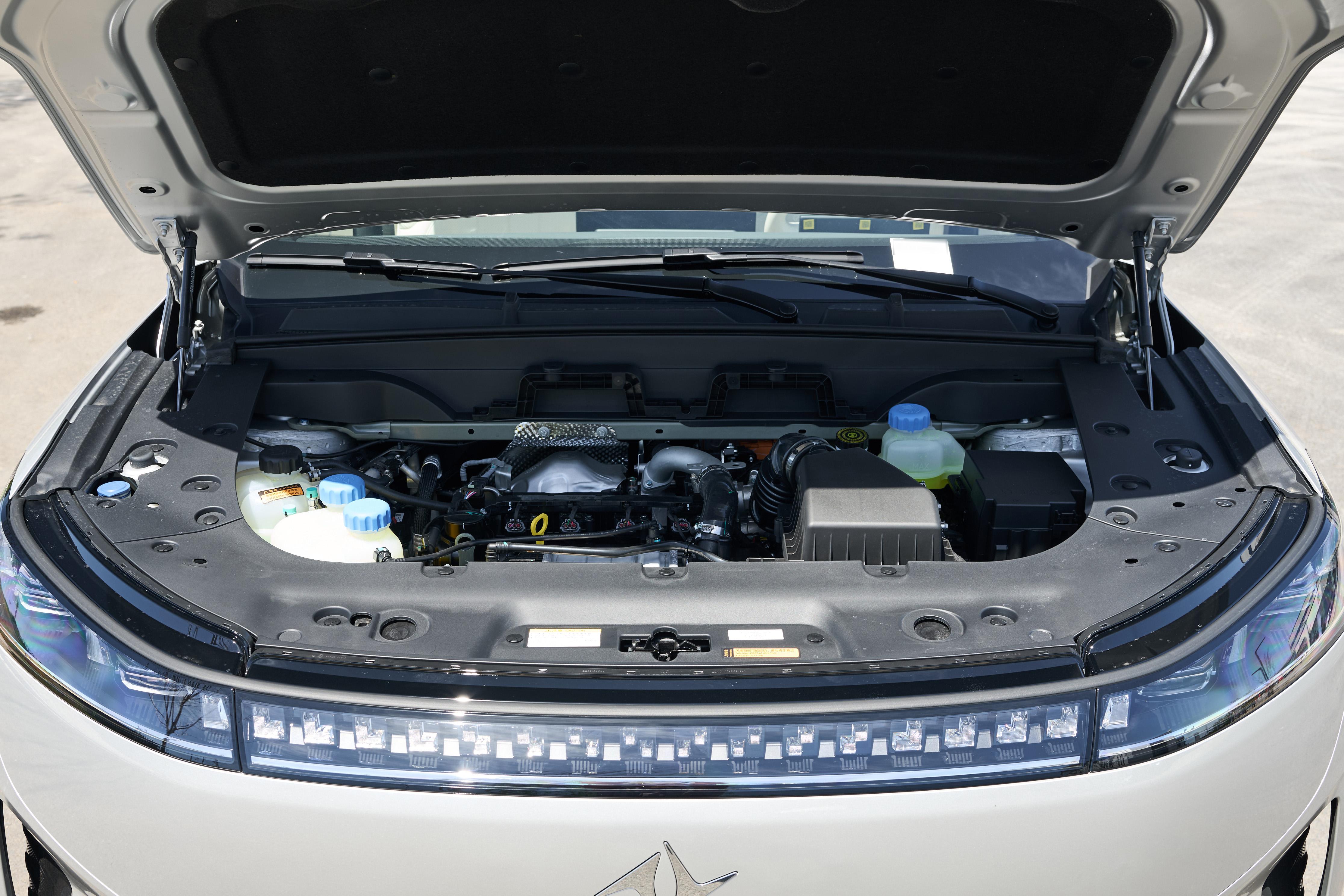 动力水平:东风奕派eπ008搭载的是一台型号为DFMC15TE3的1.5T涡轮增压发动机+后置单电机组成的增程式动力系统,匹配的是一块容量为34.32kWh的磷酸铁锂电池,系统最大功率200kW(272Ps),系统最大扭矩340N·m,匹配的是电动车单速变速箱,采用后置后驱的驱动方式,CLTC工况下纯电续航里程为202km,百公里耗电量19.5kWh/100km,仅需添加92#汽油,CLTC工况下最低荷电状态燃料消耗量4.7L/100km,另外,还支持3.3kW对外放电功能。
