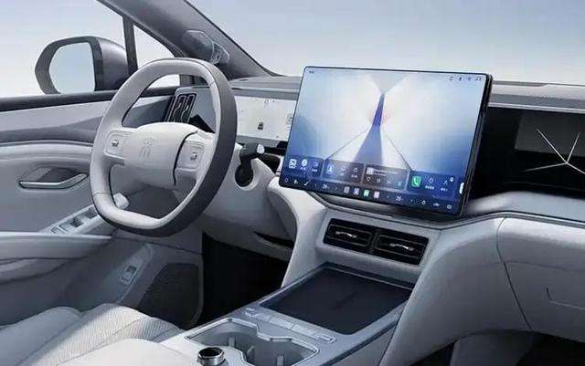 内饰主打简约实用,座舱布合理,车内用料扎实,中控台、门板等常接触之处,皆是软质材料包裹,触感不错,有高级感。提供海盐灰、暮云灰两种内饰配色,既清爽耐看又耐脏,适合有孩家庭。配备大尺寸悬浮中控屏和全液晶仪表,屏幕清晰不卡顿,用起来很方便。车内储物空间设计合理,门板、中央扶手、中控台下方都有储物格,手机、钥匙、水杯等小物件都能找到地方放,符合家用需求。