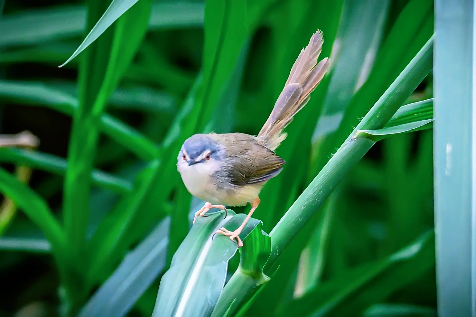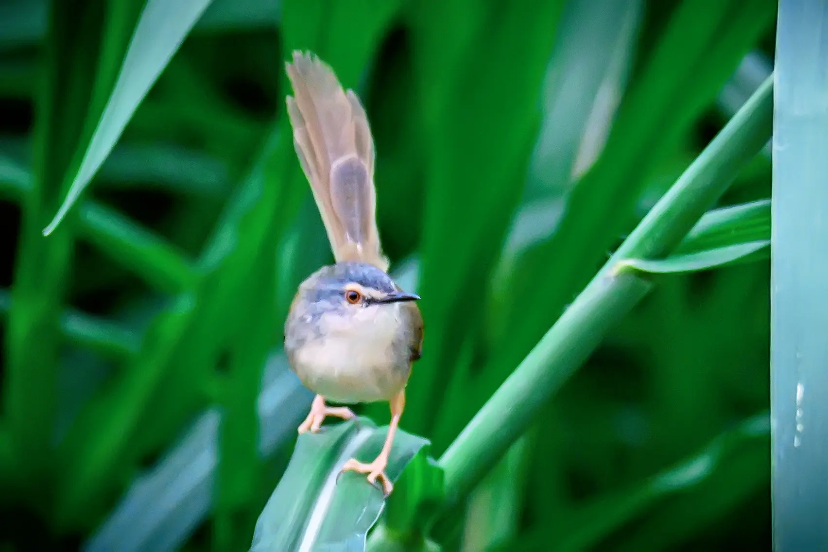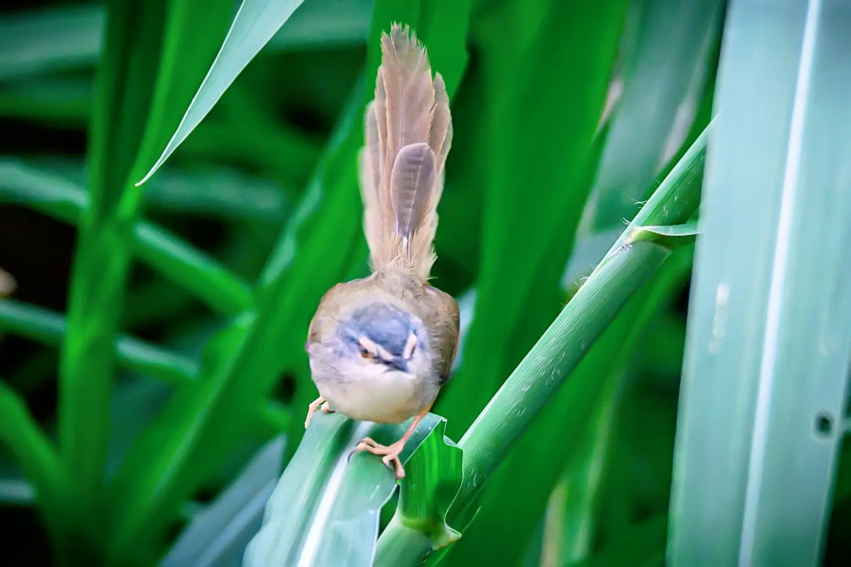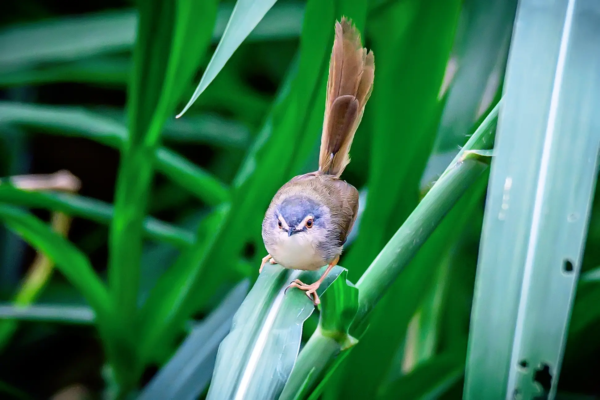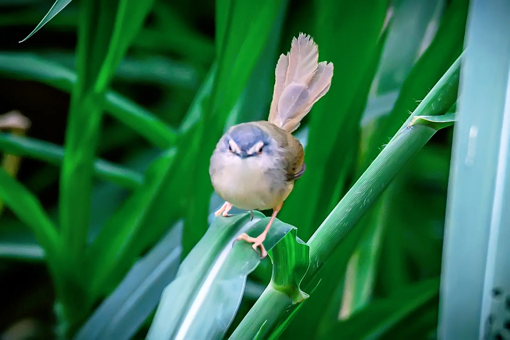 小巧玲珑的黄腹山鹪莺。黄腹山鹪莺,多栖息于海拔1500米以下的低山丘陵、农田耕地和村庄附近的灌丛与草丛中。主要以昆虫和其他小型无脊椎动物为食,也会吃少量植物种子。在繁殖期,雄鸟会通过展示鲜艳的羽毛和复杂的鸣唱来吸引雌鸟。该鸟分布于中国南方以及东南亚等地,在中国南方较为常见,属于“三有”保护动物。