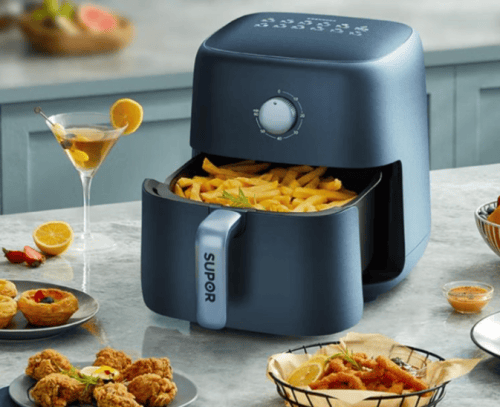 浙江苏泊尔作为中国厨房小家电领先品牌,推出的空气炸锅也是不错的。苏泊尔空气炸锅的型号为KJ42D811,长255mm,宽262mm,高300.5mm,这款空气炸锅相较于前两款来说,体型更为小巧一点,所占用的空间更小。这款机身上印有十二道常见菜品的烹饪时间,方便人们使用。