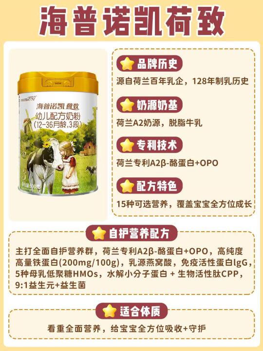 海普诺凯荷致:一直主打高端进口奶粉,源自荷兰百年乳企,128年制乳工艺
