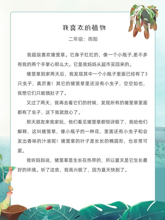 二年级优秀作文《我喜欢的植物》