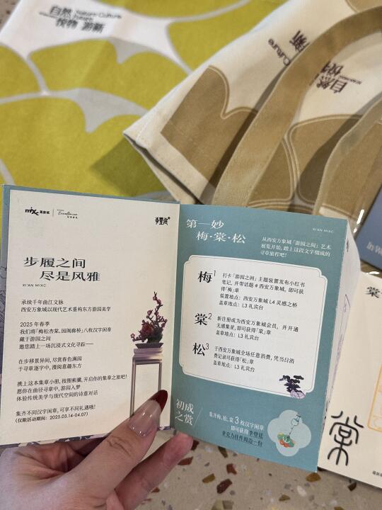 接着集齐了梅、松、棠、杏、园5枚汉字闲章,P7获得了生命之树定制帆布包, 质感超好,日常背很百搭~
