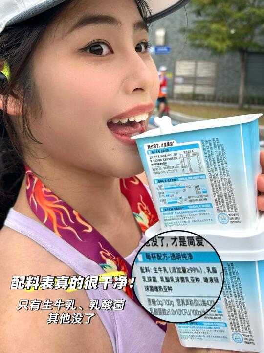 简爱0%蔗糖轻食酸奶,嫩滑中带有一丝丝甜味,赛后来一口,清爽又好吃!还是有低GI认证的,饱腹感超强的,作为赛后补给在合适不过啦!