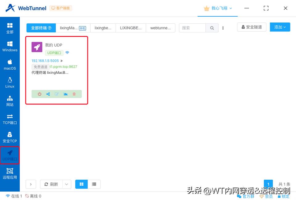 有时候我在想 什么时候 WebTunnel 才能支持 UDP穿透 让游戏不再卡顿,让监控不再掉帧 让远方的设备像在眼前一样听话 今天,它来了 WebTunnel 新版本,UDP 端口穿透正式上线! 还是那个熟悉的界面 还是那个简单的操作 但这一次,更快、更稳、更自由 老铁们,试试看? 你的反馈,就是它最好的进化方向 👉无需下载,刷新即可解锁最新功能👈 🔥 穿透无界,连接随心 🔥