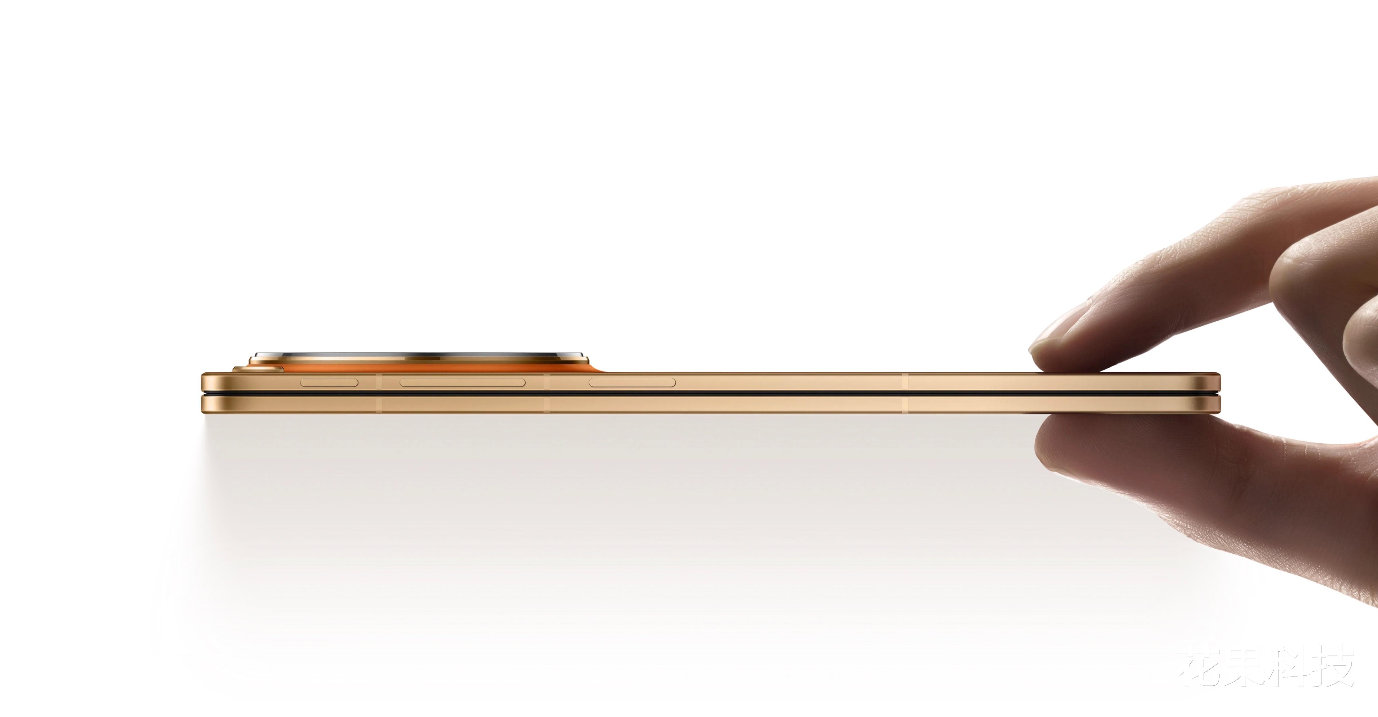 它的内屏为 8.12 英寸,外屏为 6.62 英寸,整机重 225g,折痕后厚度为 8.93mm,展开后厚度为 4.21mm。