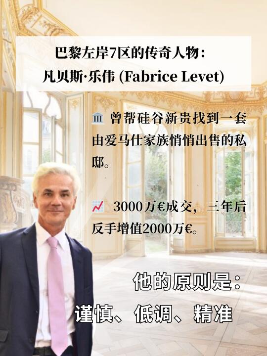 他曾为一位硅谷新贵匹配了一栋由爱马仕家族私下出售的隐秘府邸。三年后,又将其以高出2000万欧元的价格转手,真正做到了——精准、克制、稳准狠。