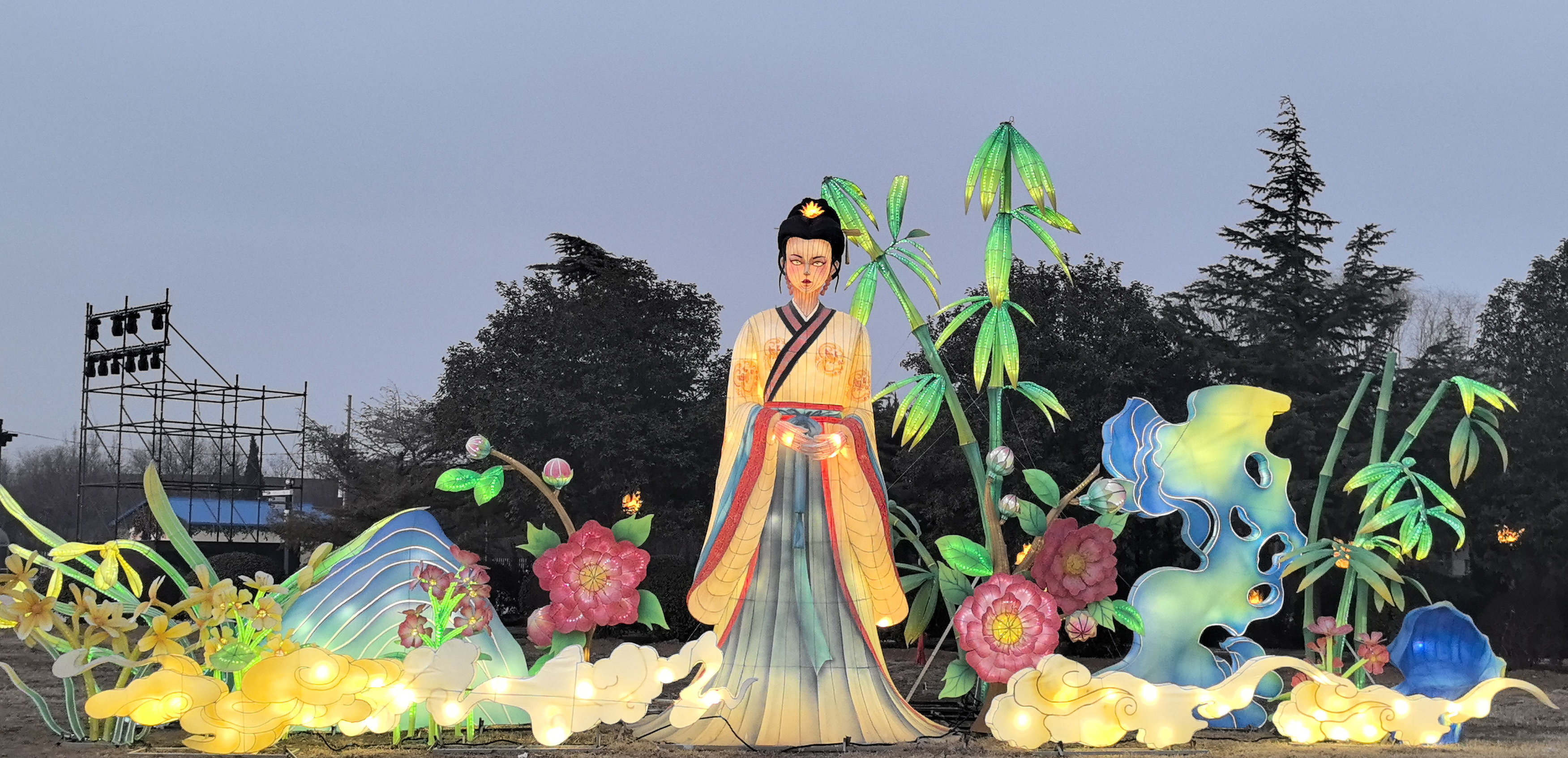 当夜幕渐浓,华灯初上,几十盏花灯次第点亮,将舜德花海的夜色勾勒得如梦似幻。
