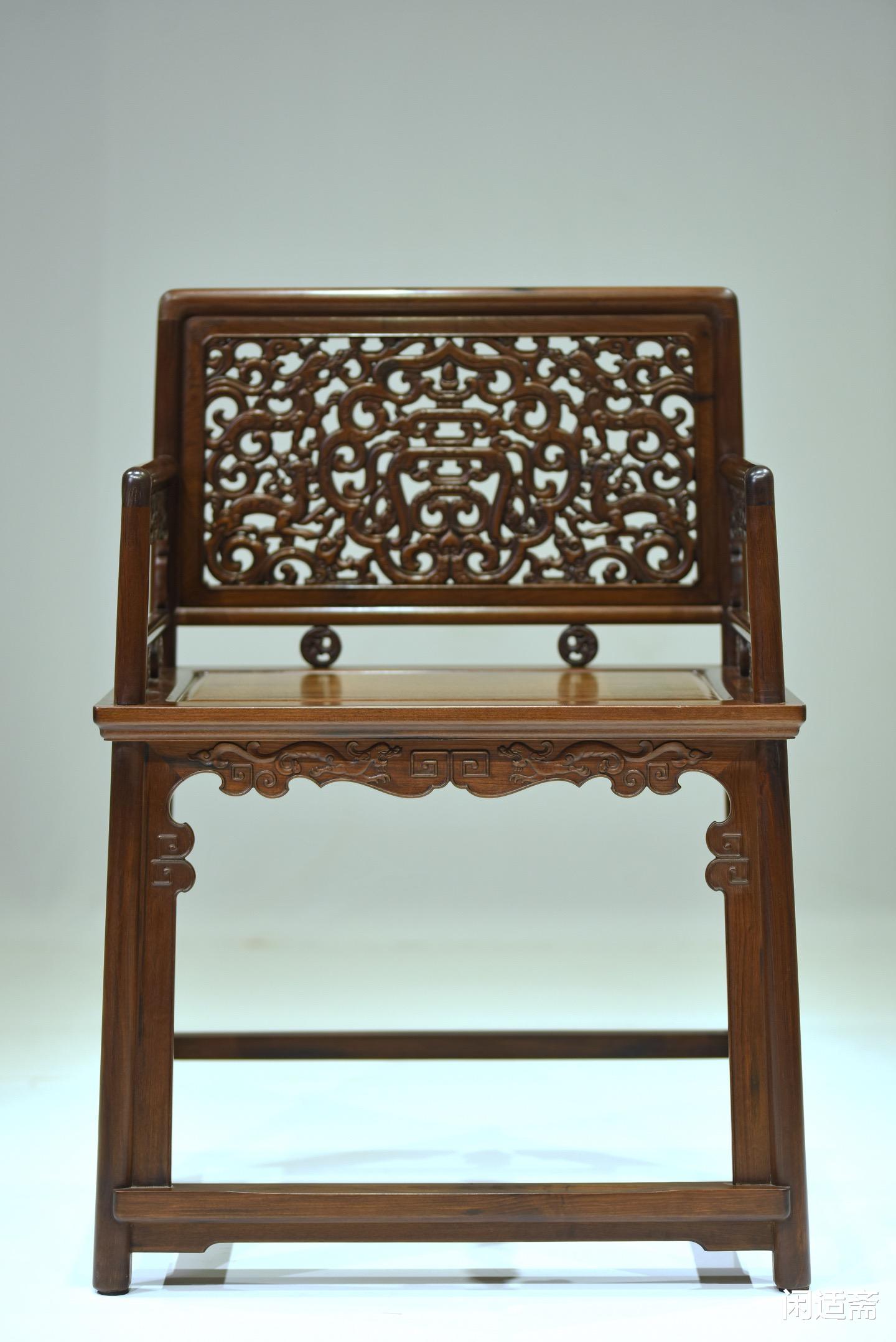 整器复刻王世襄款经典形制,比例舒展协调,扶手低矮利落,靠背弧度贴合人体工学,坐感舒适妥帖,既符合文人静坐读书的需求,又尽显雅致格调。