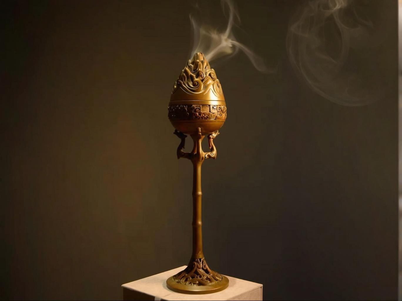 香炉的样式,几千年来变了许多回。早先的香炉,模样很庄重,汉代人用的博山炉,炉盖高耸成山形,上面雕刻着仙人和神兽。焚香的时候,烟气从山峦间的孔窍里袅袅升起,让人望见便想起传说中的海上仙山。那时的人们相信,烟气能连通天地。