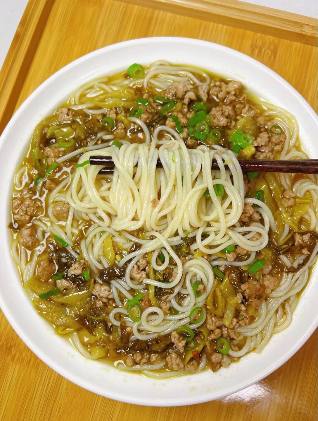 酸菜肉沫米线口感酸辣爽口,以下是制作方法: